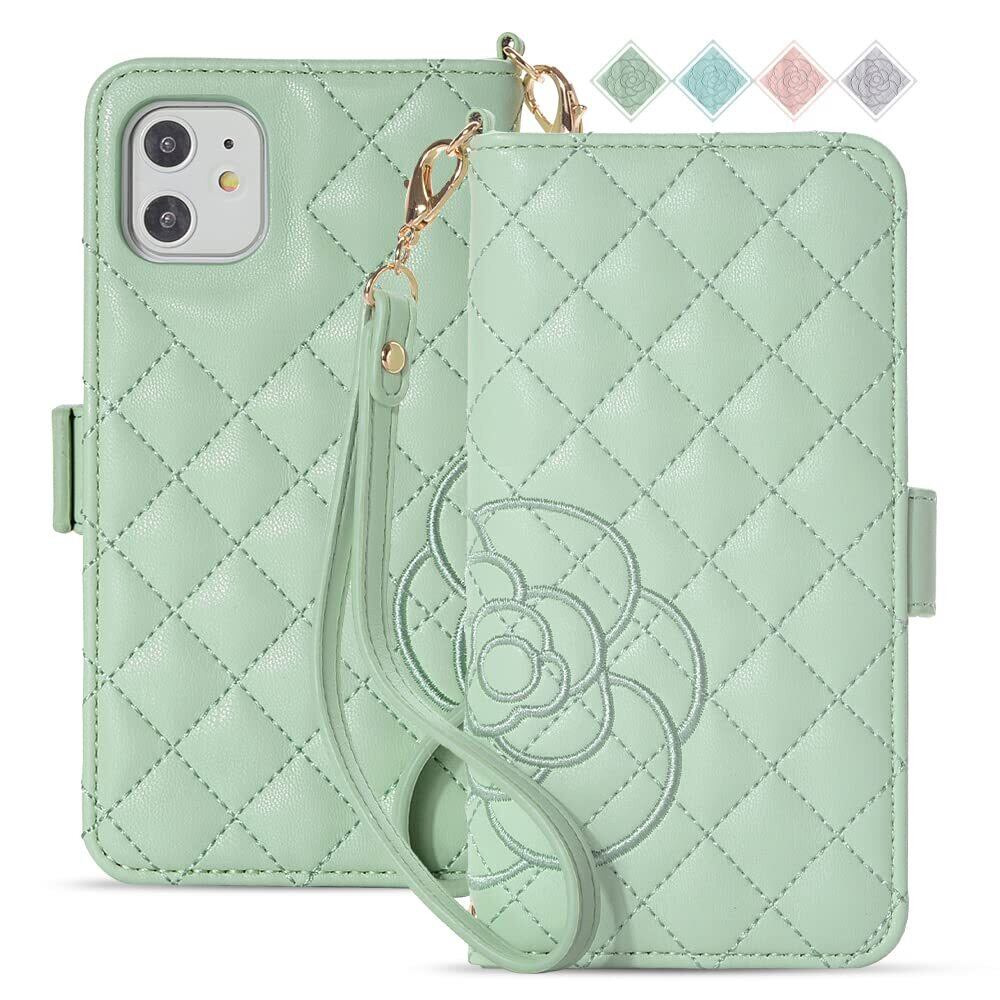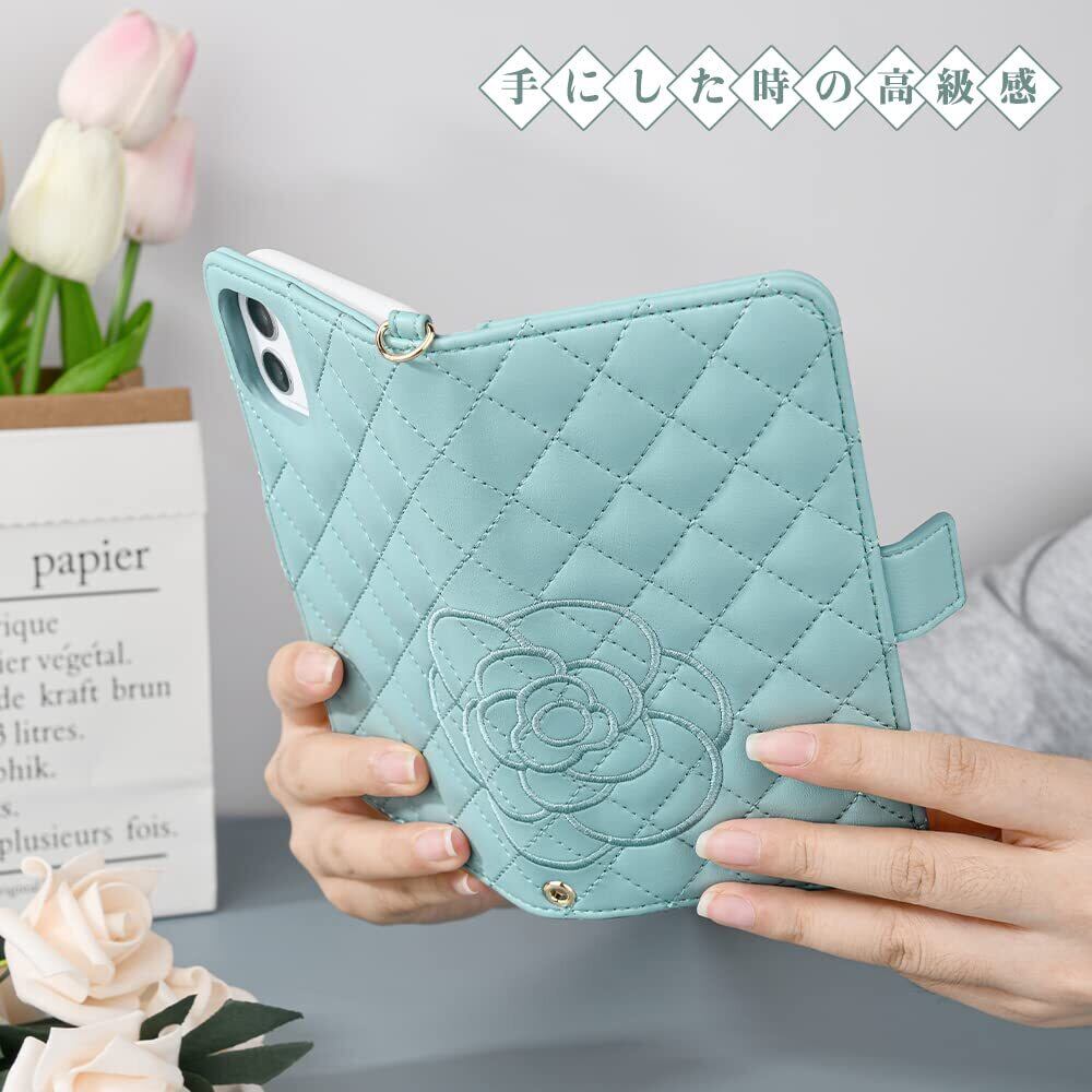 【Amazon限定ブランド】iGerico iPhone14ケース iPhone14 ケース 手帳型 椿 母の日ギフト 山茶の花 薔薇 チェック柄 刺繍 鏡付き アイフォン14 ケース 手帳型 花柄 サザンカ 花 保護カバー ダイアリー式 花柄模様 柔軟性 携帯 アイフォン14 ケース TPU 材質 指紋防止カバー iPhone14 ケース 手帳型 柄は マグネット付き iPhone14ケース 手帳型 財布型 カード収納 スタンド機能 裏側でも磁石(iPhone 14 (6.1)グリーン)