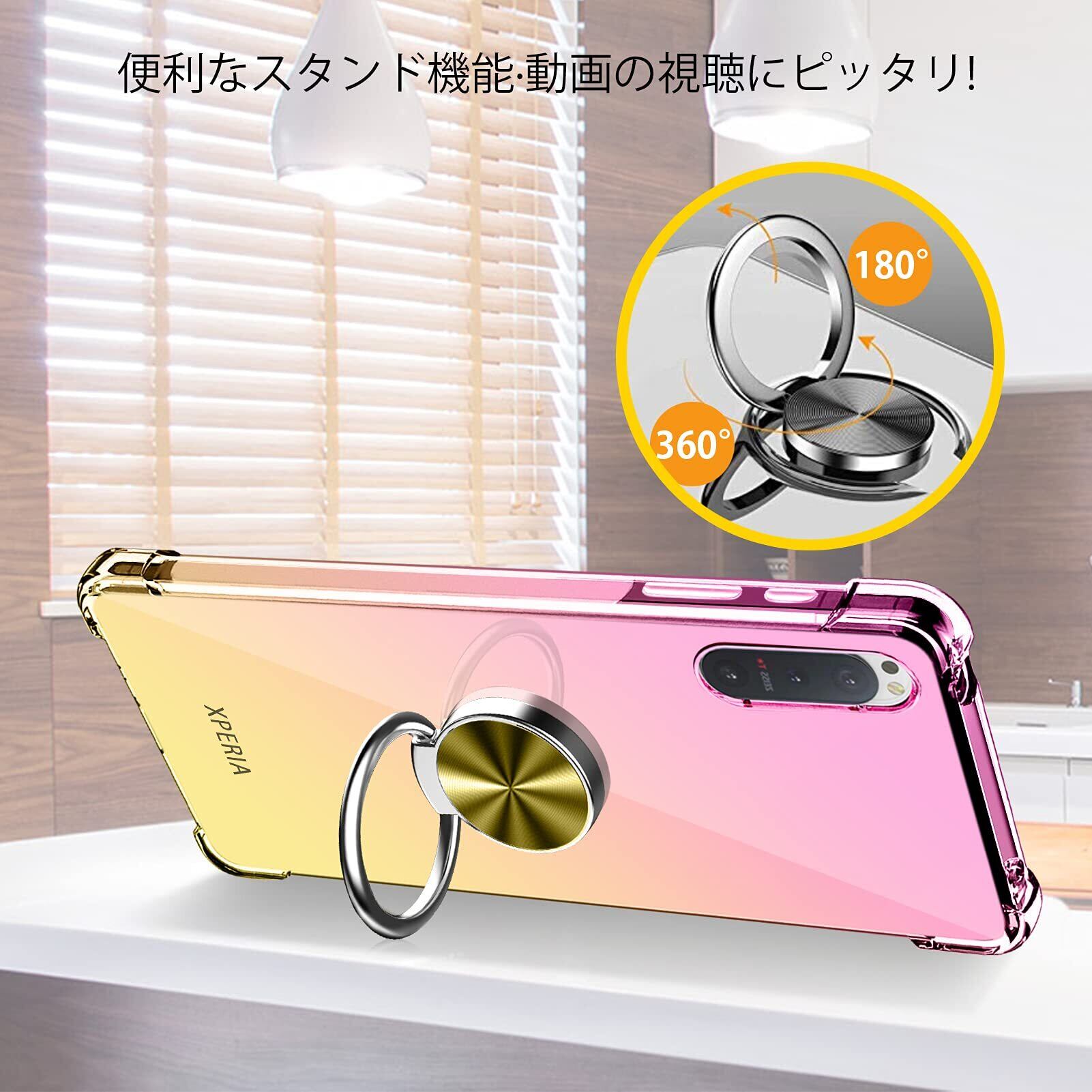 ◆【リング付き】マグネット対応金属板採用し、車載ホルダーに強く吸着することもできます。ケースを横向きにするとスタンド機能になり、360度回転と180度調節可能です。