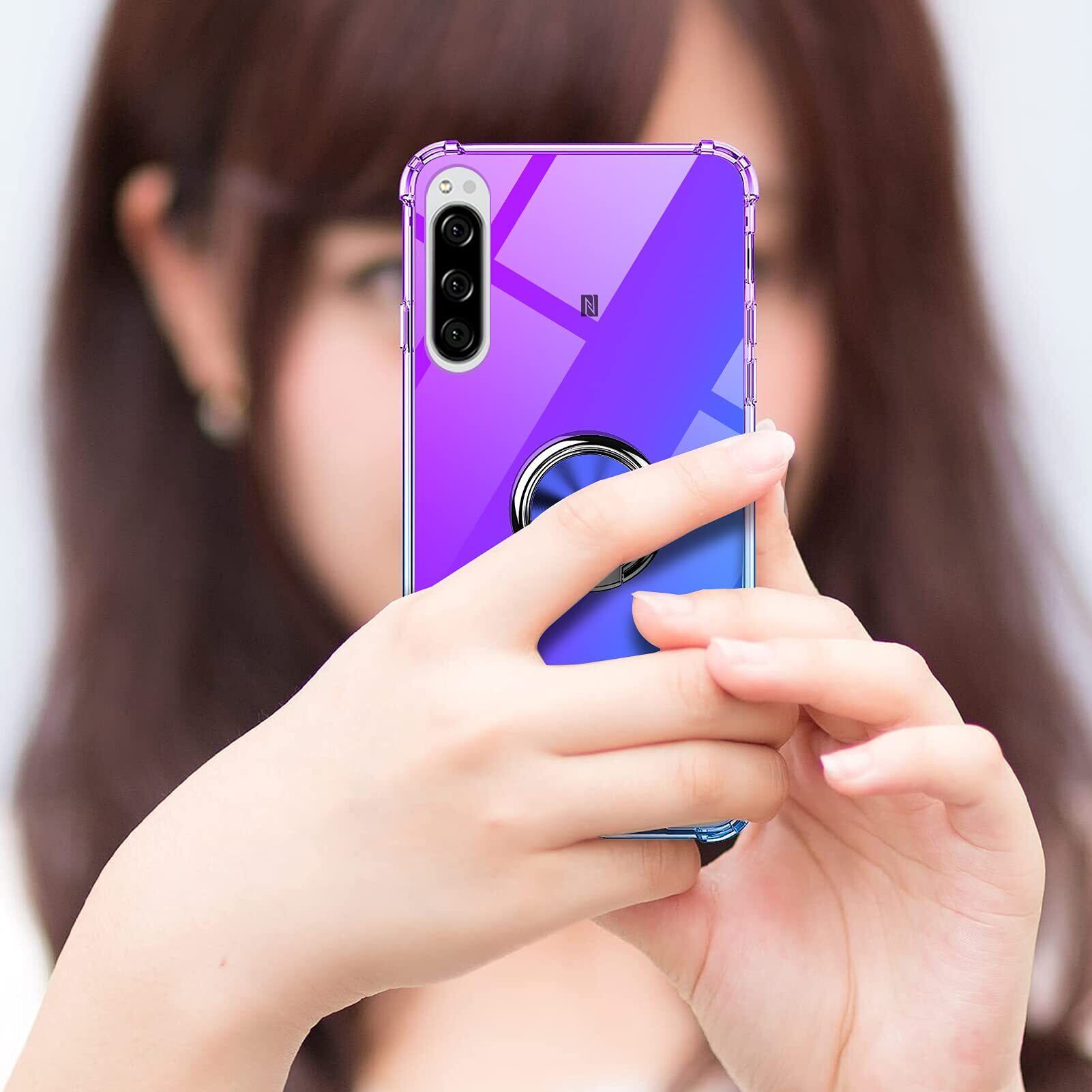 Galaxy A53 5G ケース リング クリア TPU 耐衝撃ケース 透明 車載ホルダー スタンド機能 グラデーション 薄型 サムスン ギャラクシーA53 カバー 全面保護 360回転 軽量 シリコン 黄変防止 防指紋 防塵 スリム 滑り防止 人気 携帯カバー パープル+ブルー YZ51-104