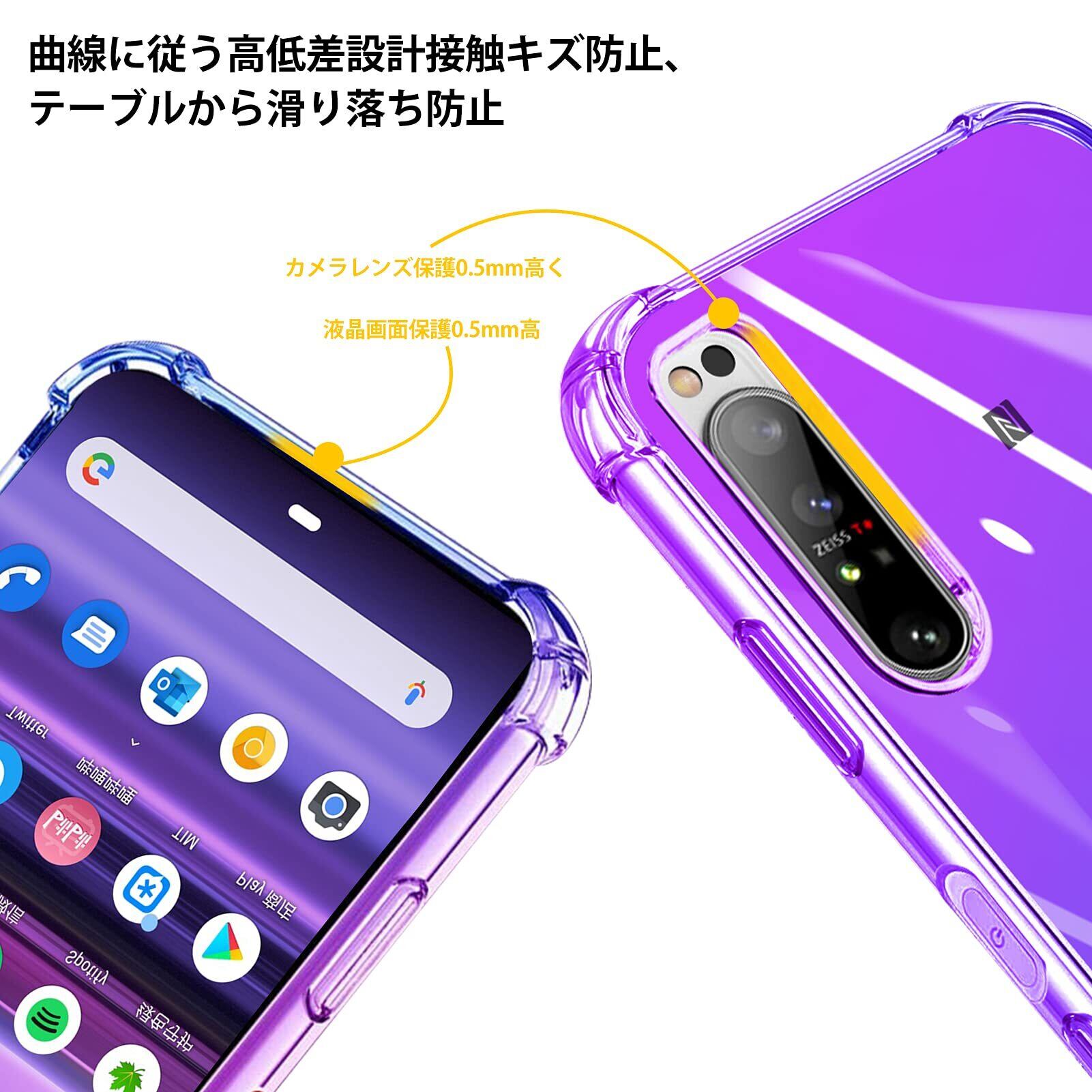 ◆【グラデーションの外観】背面部分は透明で、背面部分にグラデーション美しさとシャープさがMIXされたスッキリデザイン。透明度が高く、携帯電話本体の美しさを完璧に見せます。わずか0.5mmの極薄軽量デザインで、持ち運びに便利、長く持っても手が疲れる感じもありません。まるでケースを付けていないかのような質感。