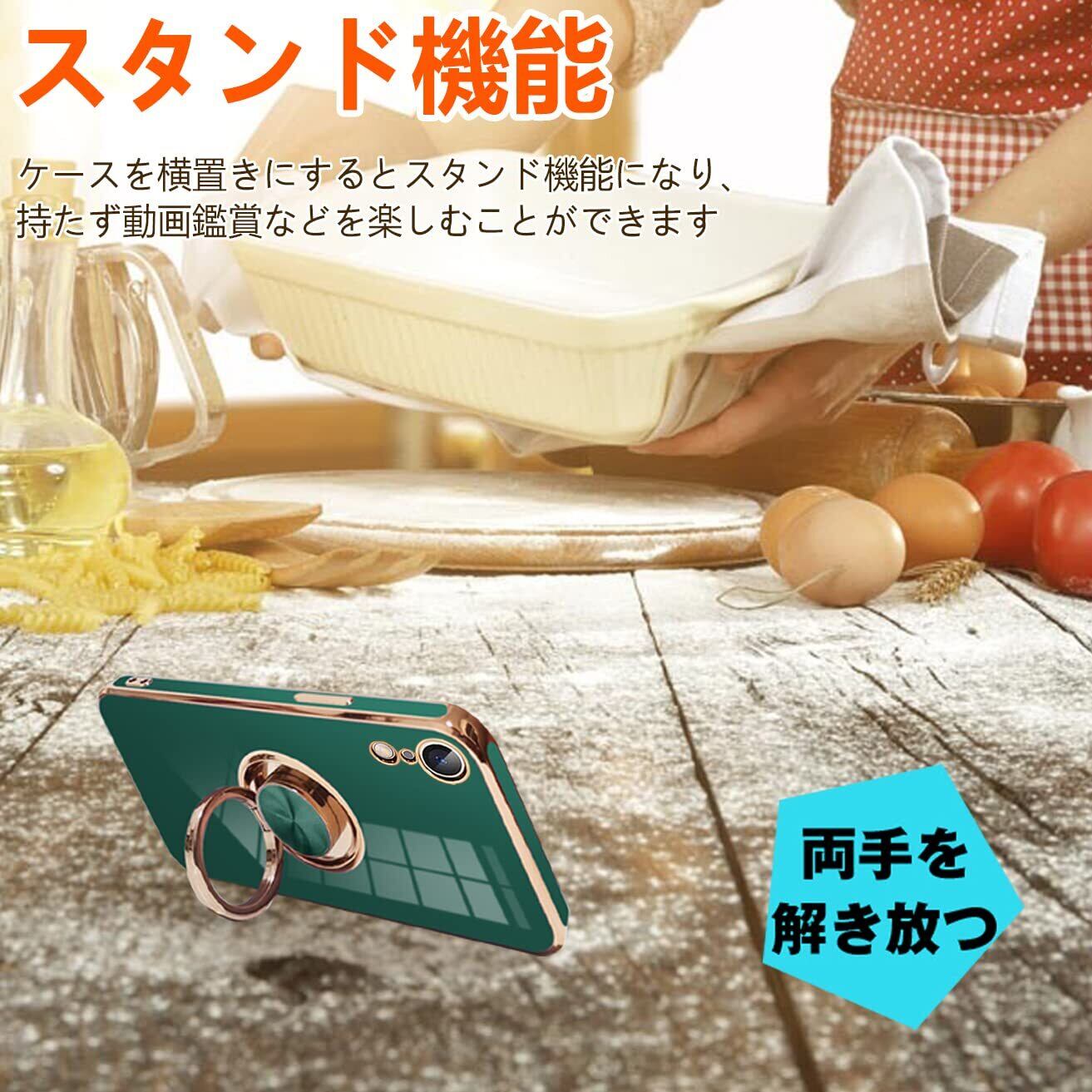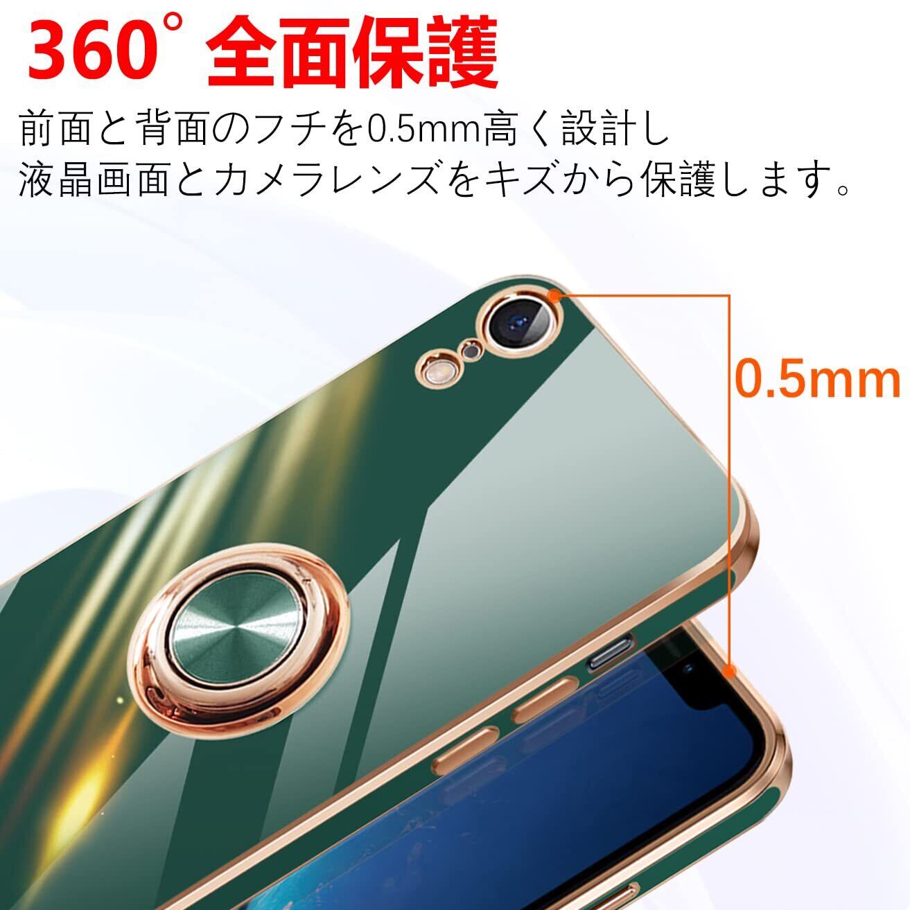 【対応機種】iPhone XR ケース リング スマートフォン専用保護カバー 。(6.1インチ)(ダークグリーン)