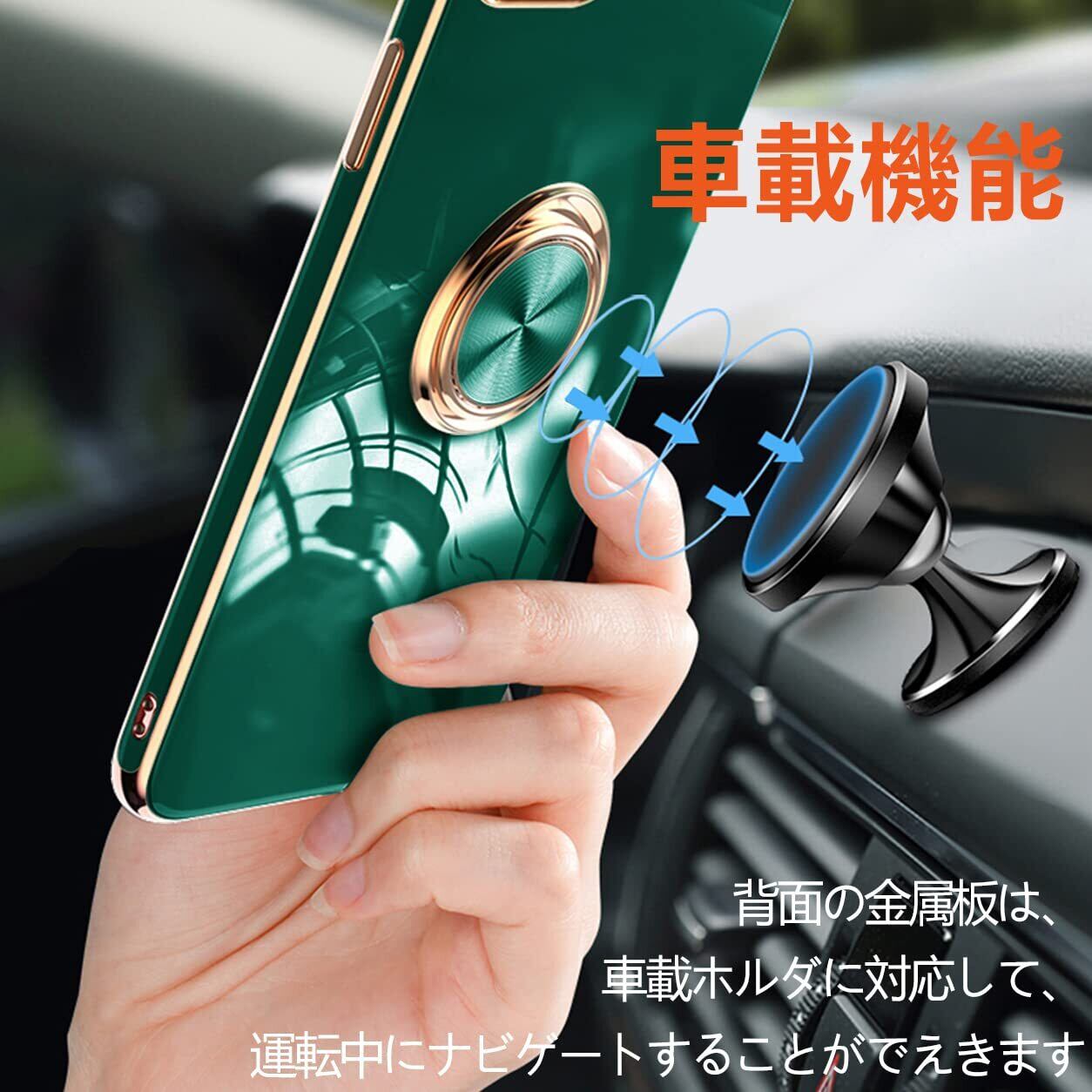 【リングの機能&スタンド機能】360°回転可能リングホルダーです。片手で携帯を操作でき、滑り止め、強奪、落下などのことを防げます。リング.ホルダーの機能は携帯を横に放置できて、いつでもどこでも音楽、facetime、映画などの娯楽番組を思い切り楽しめます。マグネット式車載ホルダーに対応し、内蔵メタルシートのデザインで、車の磁石支持して使用できます。