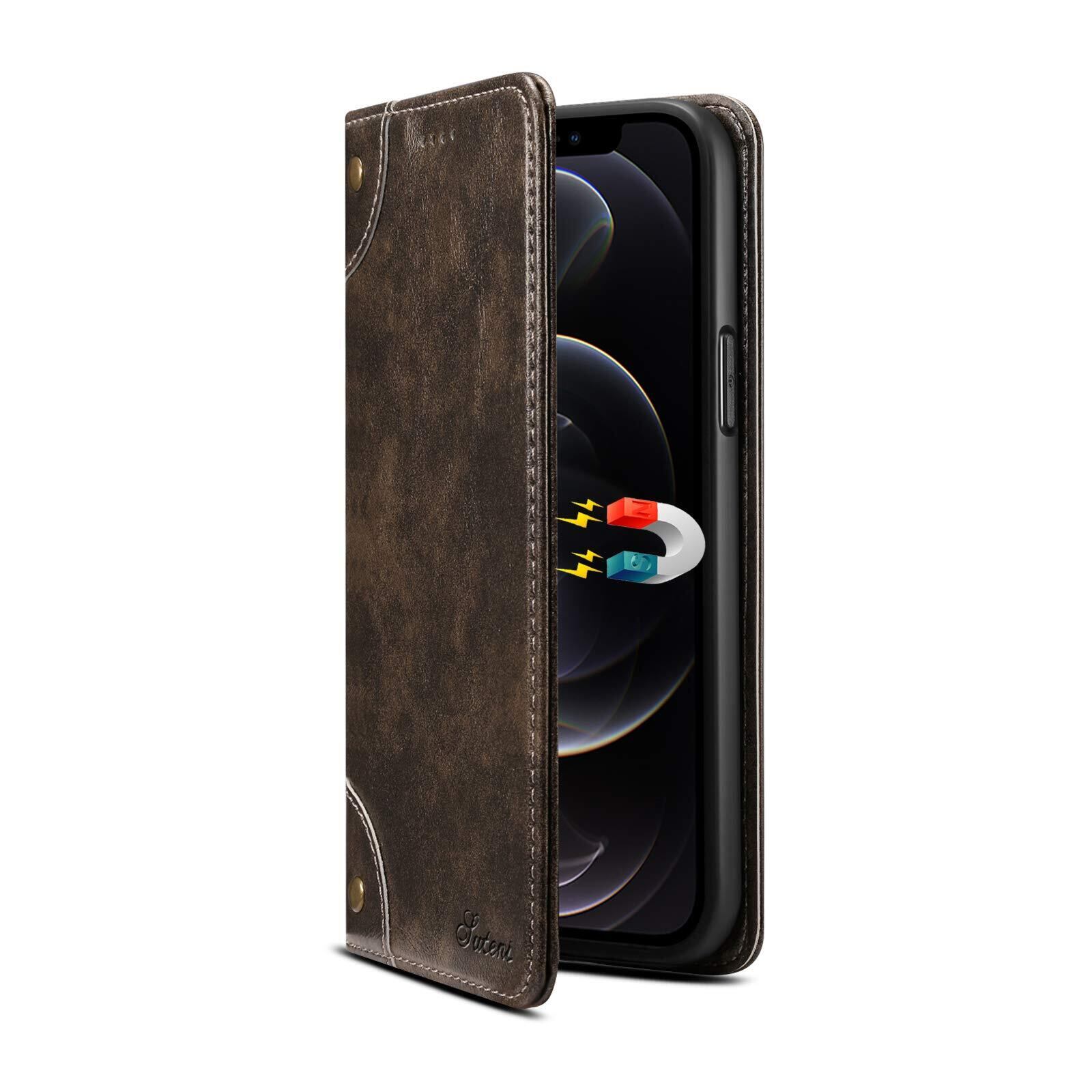 JCGOOD iPhone 13 ケース 手帳型 カード収納 アイフォン13 カバー 手帳 スタンド機能 マグネット式 本革 レザー 財布型 携帯スマホケース軽量 薄型 防塵 耐衝撃保護 ワイヤレス充電対応 アイホン13 6.1用 (iPhone13, ブラック)