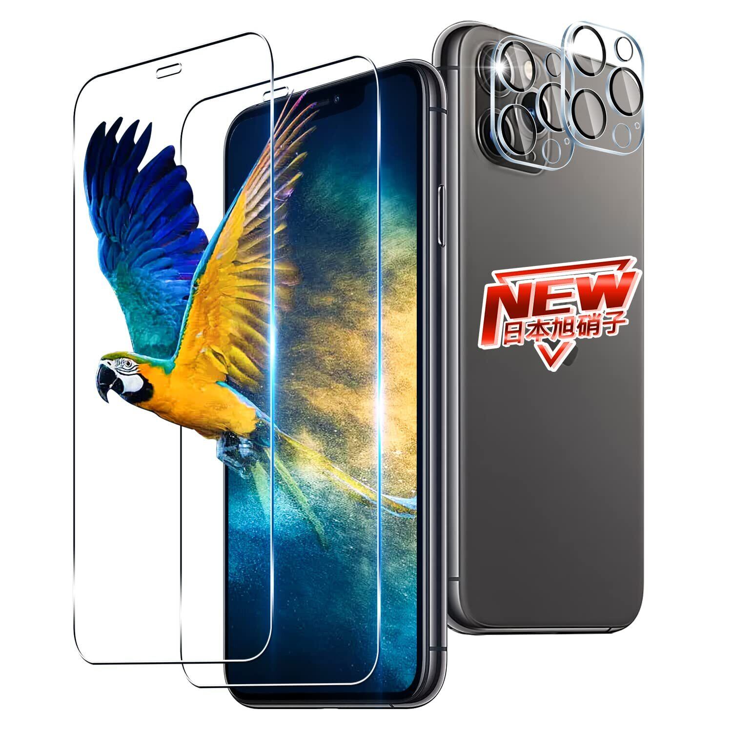 【2+2枚セット】 対応 iPhone 11 Pro Max ガラスフィルム 2枚 + レンズ 保護フィルム 2枚 指紋認証 対応 いphone11promax フィルム 強化ガラス 液晶 保護フィルム ケース 【 硬度9H 日本旭硝子製 】 対応 アイフォン11ProMax 強化ガラスフィルム キズ防止 耐衝撃 飛散防止 全面保護 3D Touch対応 厚さ0.26 極薄タイプ 高感度タッチ 気泡ゼロ 自動吸着 貼り付け簡単 iPhone 11ProMax 用 フィルム