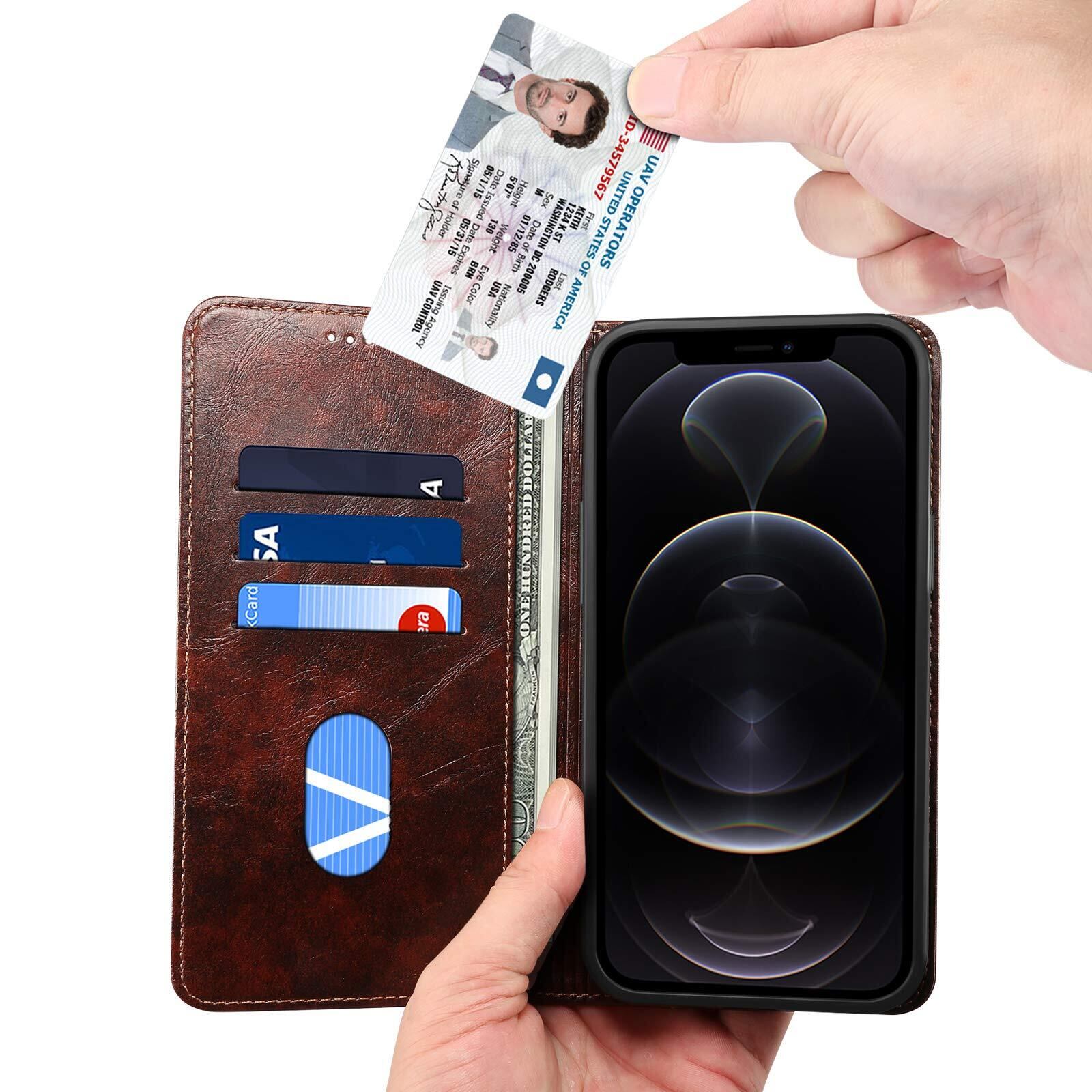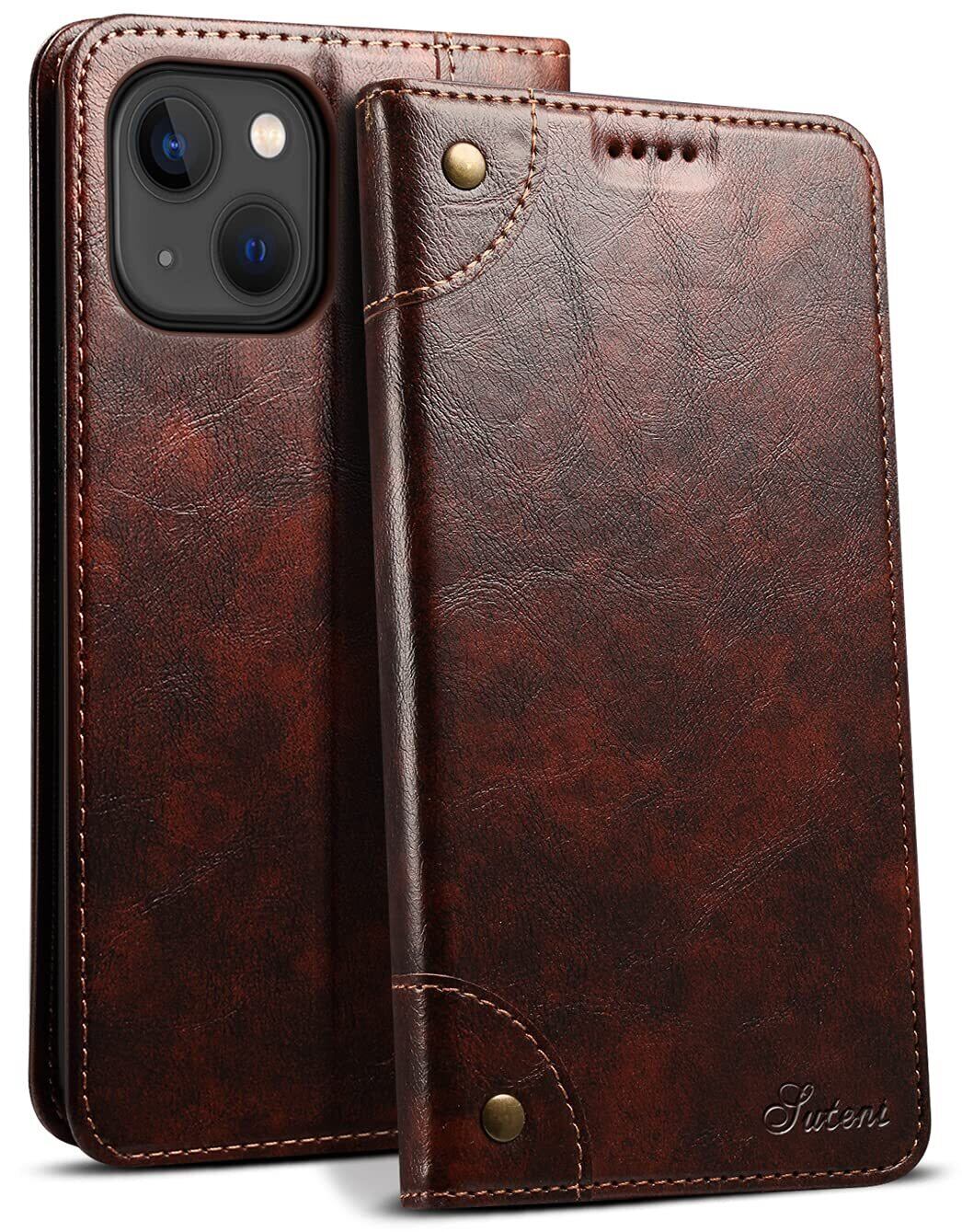 JCGOOD iPhone 13 ケース 手帳型 カード収納 アイフォン13 カバー 手帳 スタンド機能 マグネット式 本革 レザー 財布型 携帯スマホケース軽量 薄型 防塵 耐衝撃保護 ワイヤレス充電対応 アイホン13 6.1用 (iPhone13, ブラウン)