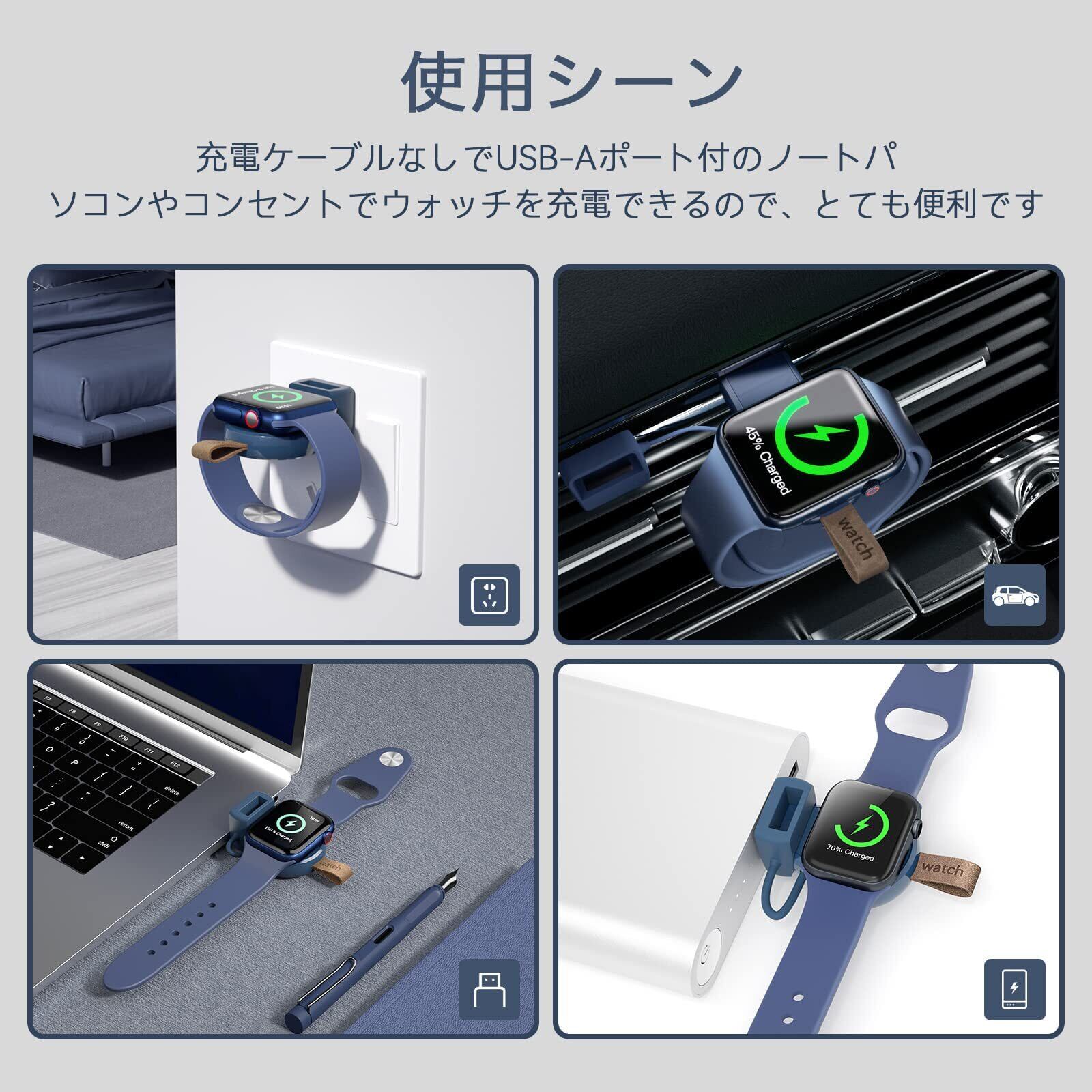 NEWDERY Apple Watch用充電器 USB-Aポート マグネット式 ワイヤレス充電器 急速充電 apple watch 2/3/4/5/6/7/8/9/se/se2/Ultra/Ultra2対応 アップルウォッチ用 小型 軽量 コンパクト 持ち運び便利 ブルー