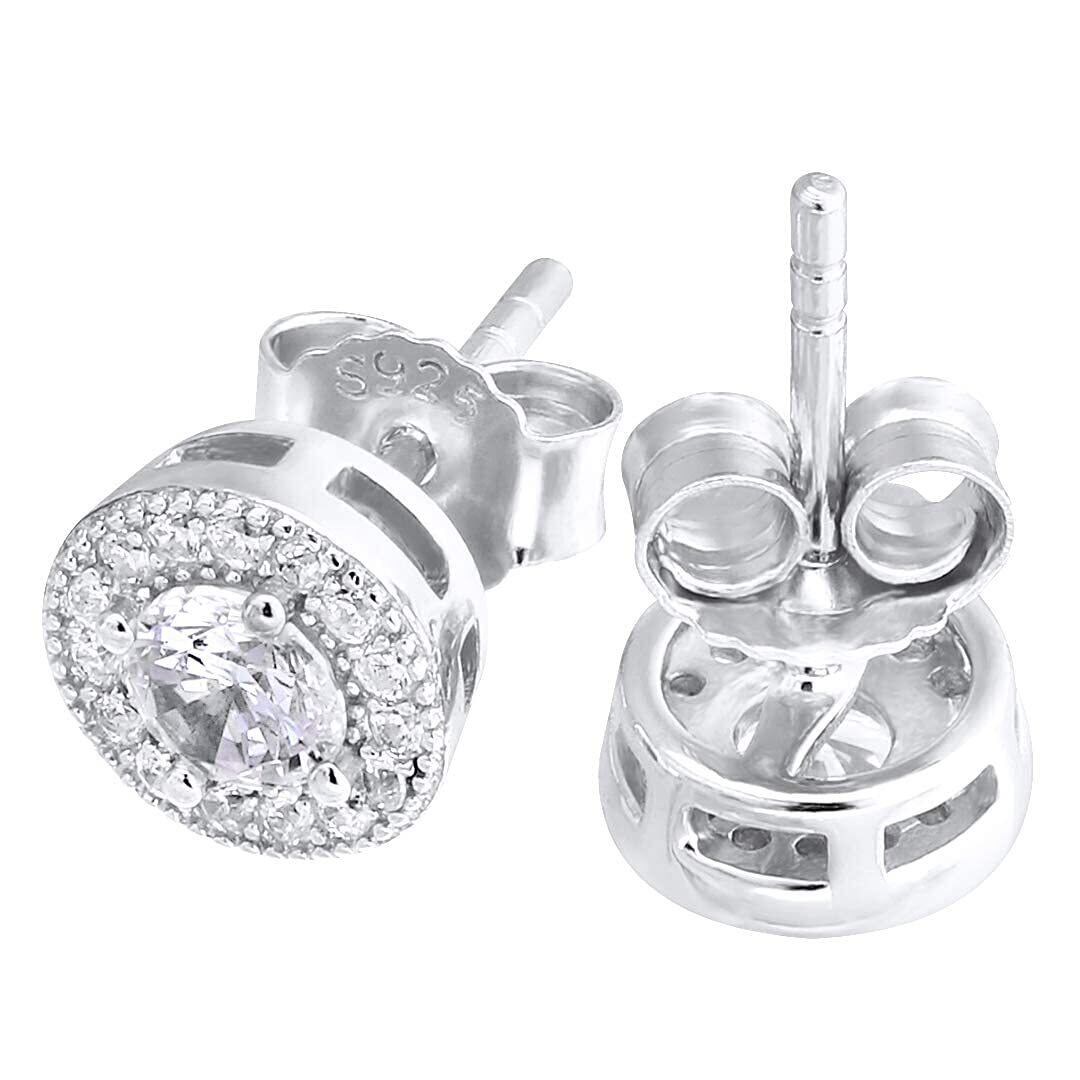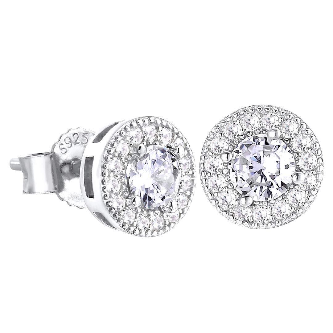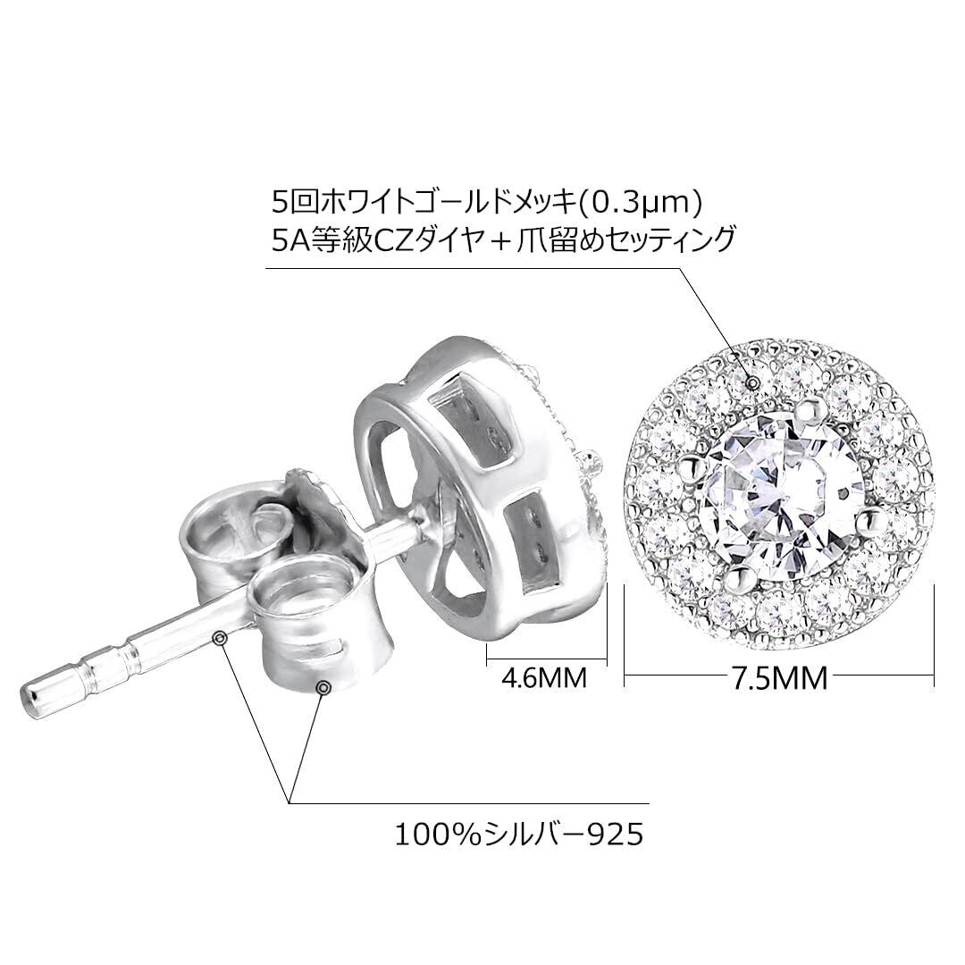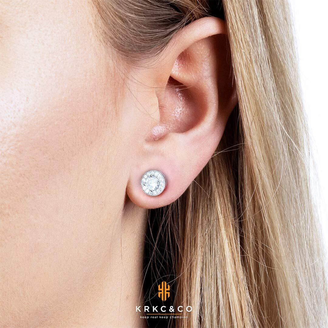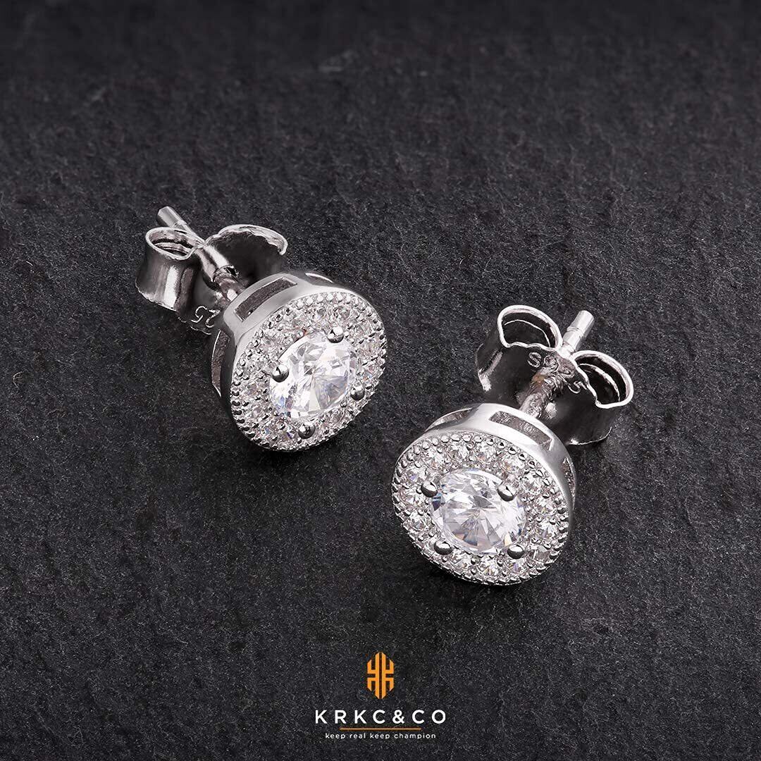 KRKC&CO ラウンド ピアス レディースピアス メンズ イヤリング 両耳用 CZダイヤ ジルコニア シルバー 男女兼用 かっこいい アクセサリー 誕生日 記念日 プレゼント (S925-銀色)