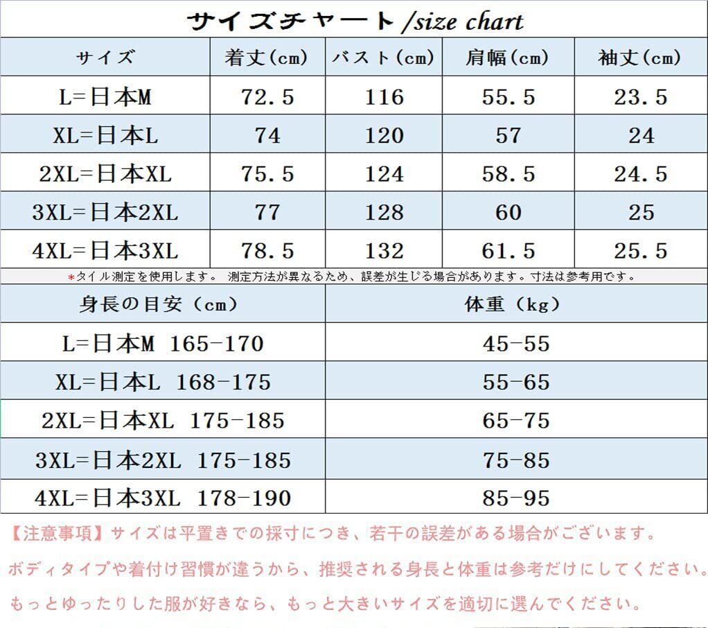 【4XL=日本3XL】 身長の目安:178-190cm 体重:85-95kg