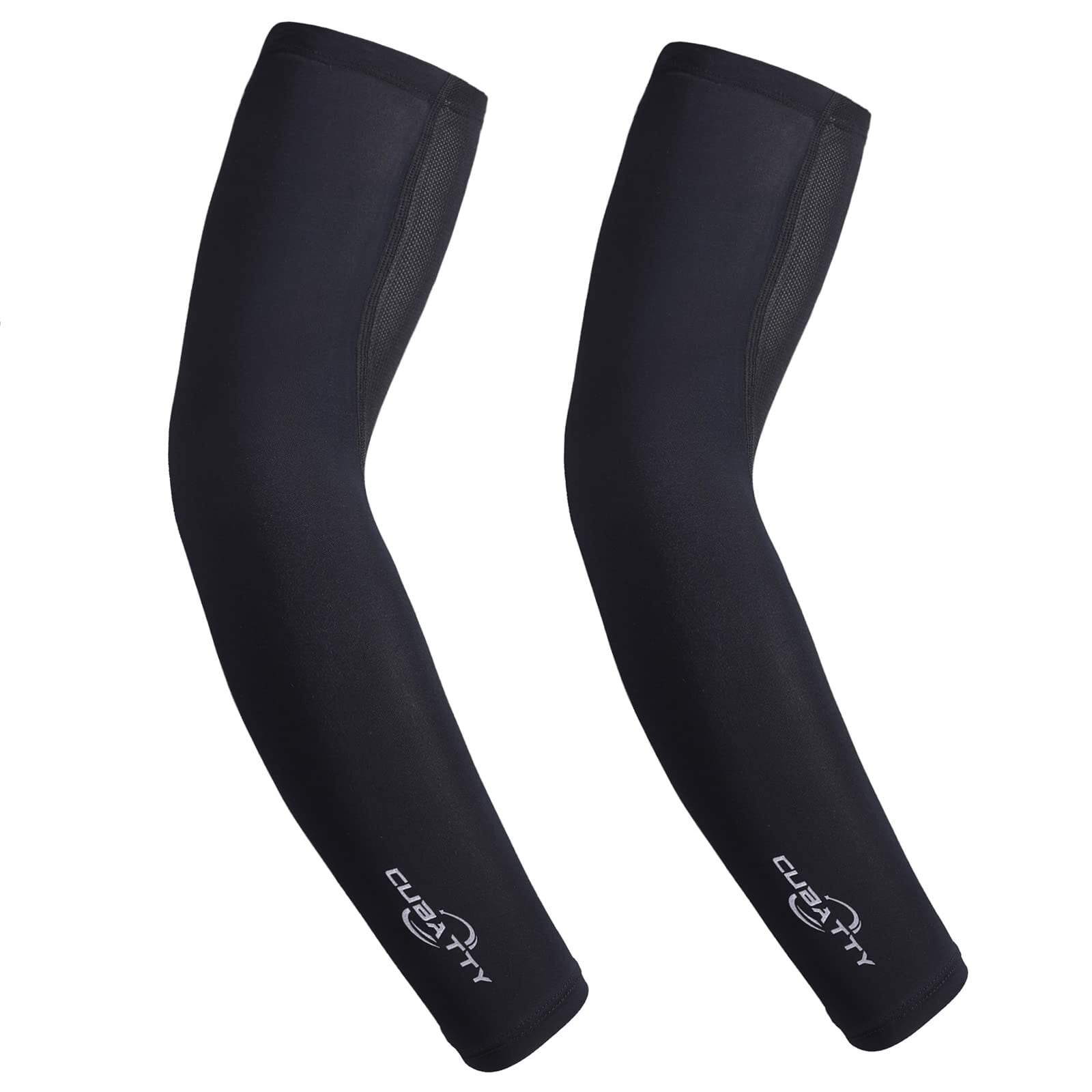 [CUBATTY] アームカバー 冷感 アームスリーブ 日焼け防止 UPF50+ 涼しい サラサラ アームウォーマー 無地 吸汗速乾 滑り止め付き 通気メッシュデザイン メンズ レディース 野球 ゴルフ ランニング スポーツ 作業用 腕カバー (XL, ブラック)