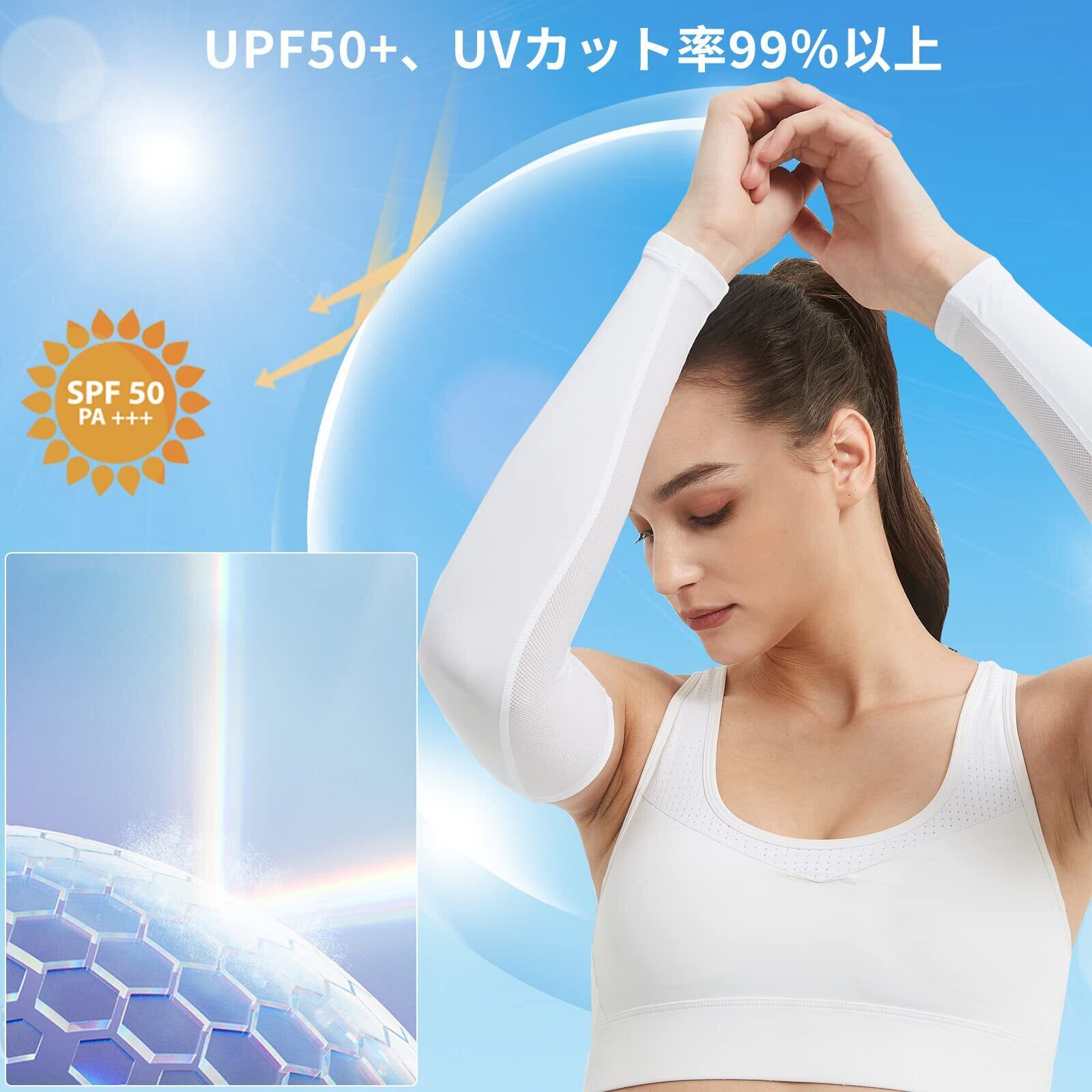 【UPF50+&日焼け対策】CUBATTYアームカバーは上質の素材と丁寧な縫製で作られており、紫外線カット率99%まで、最高ランクのUPF50+を実現しました。紫外線や日焼けからお肌をしっかりと守ってくれます、繰り返し洗濯してもUV効果が持続します。