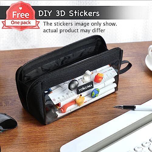 YOKUMA ペンケース 筆箱 ポーチ 透明 おしゃれ シンプル 大容量 多機能 大人 高校生 中学生 男の子 女の子 大学生 小学生 子供用 (ブラック)