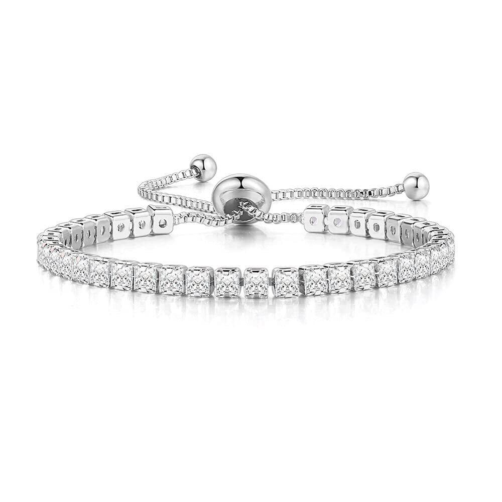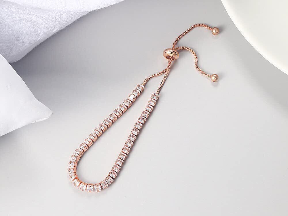 ブレスレット レディース 18K ピンクゴールド プレーティング キュービックジルコニア 調整可能 ニッケルフリー アレルギー対応 誕生日プレゼント (銀-CZ)