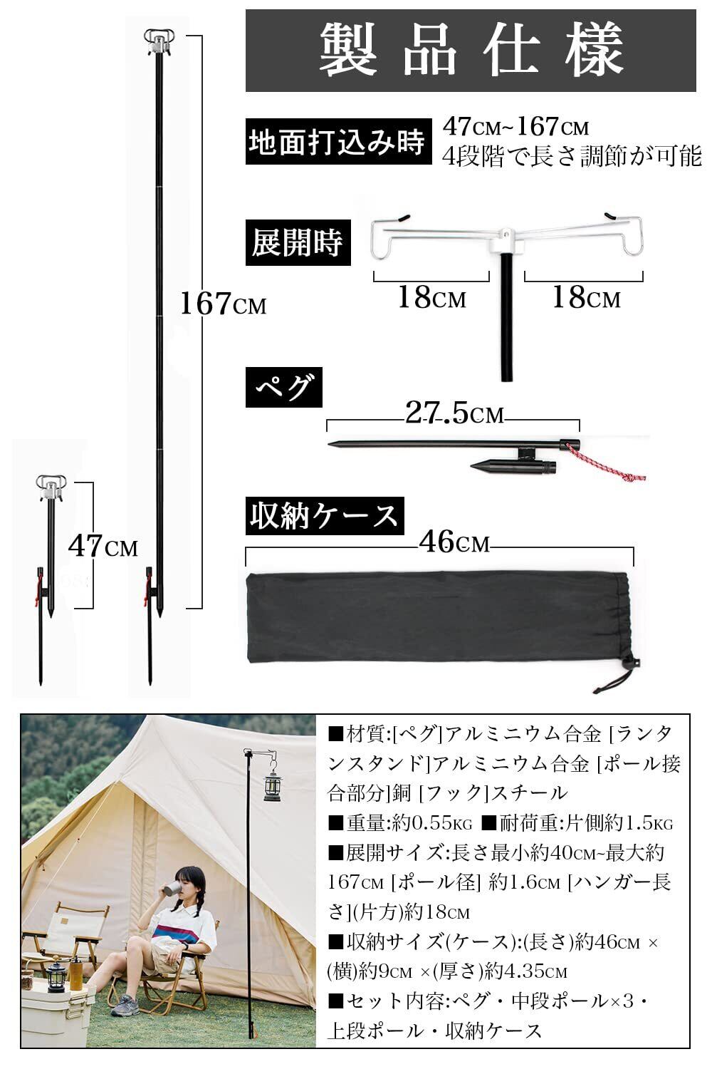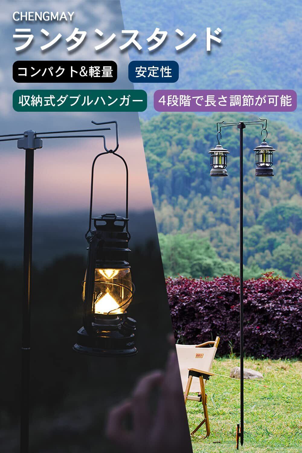 CHENGMAY ランタンスタンド ダブル 収納式ダブルハンガー 直径16mm 打ち込み 軽量 高さ調整 コンパクト キャンプ ランタンポール アウトドア キャンプ用品