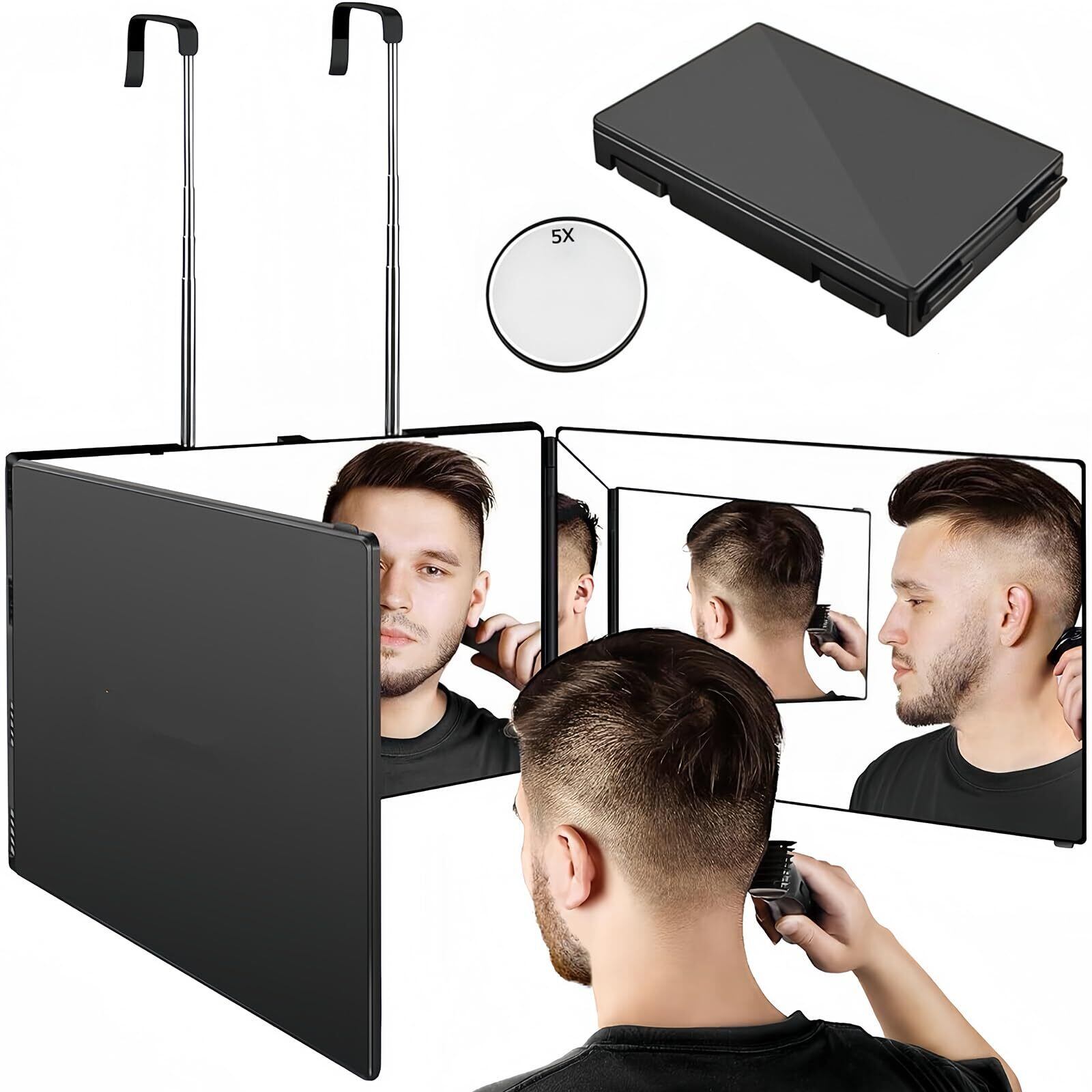 Eastbury 三面鏡 セルフカット 高さ調節可能 360°角度自在調整 三面鏡 後ろが見える 化粧鏡 持ち運び 折り畳み収納 壁掛け式 3ウェイミラー セルフカット 立体三面鏡 広い視野角 安定感 飛散防止 HD鏡面 後頭部が見える 5倍拡大鏡付き(ブラック)