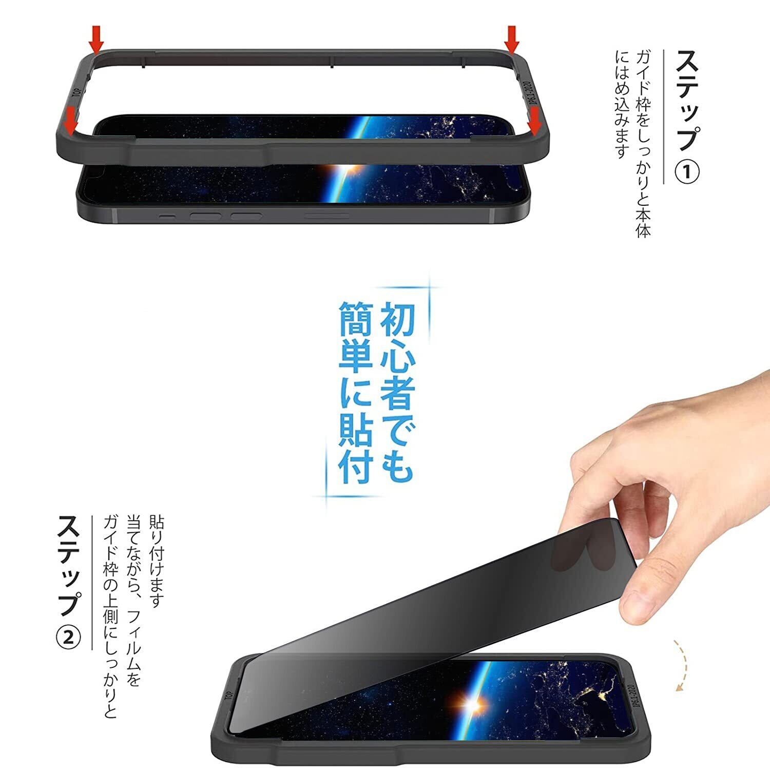 【初心者でも簡単に貼り付け可能】専用の位置決め用ガイド枠を提供し、簡単に貼り付け可能。ほこりを取り除き、位置合わせてから貼り付ける必要 ガラスフィルムを画面に置くと自動的に吸着でき、自動吸着タイプでは気泡が発生せず、だれでも簡単に貼り付けることができる。 "