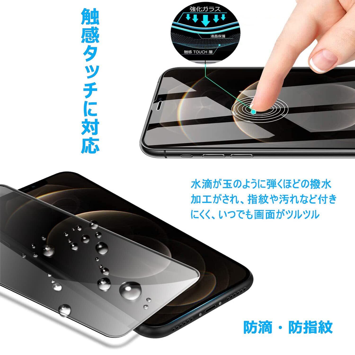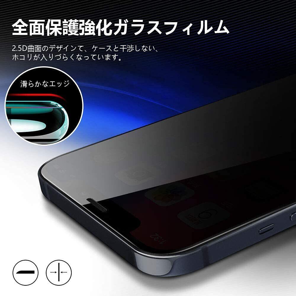 対象機種:iPhone 12 pro Max 6.7インチ【4枚入り】覗き見防止強化ガラスフィルム2枚+レンズフィルム2枚 指紋防止/油脂汚れ防止/エッジ割れ防止/耐衝撃性/耐引っかき性/高感度強化保護フィルム。