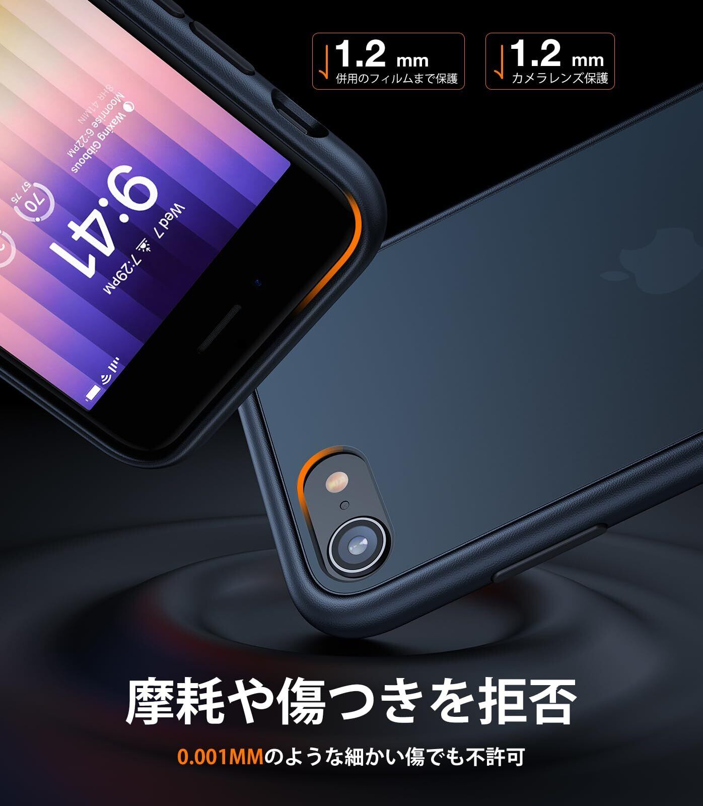 【レンズ・画面まで細部保護】iPhone se2、se3、7、8に合わせた曲線に従った高低差設計で、液晶画面より1.2mm高く、カメラレンズより1.2mm高く、外部と接触せず傷をつける心配はありません。背面サイドは少し高めになっており、滑り止め機能が付いており、ケースの背面も傷から守れます。※前面ガラスフィルムが付属していないですが、ご併用したフィルムを守っています。