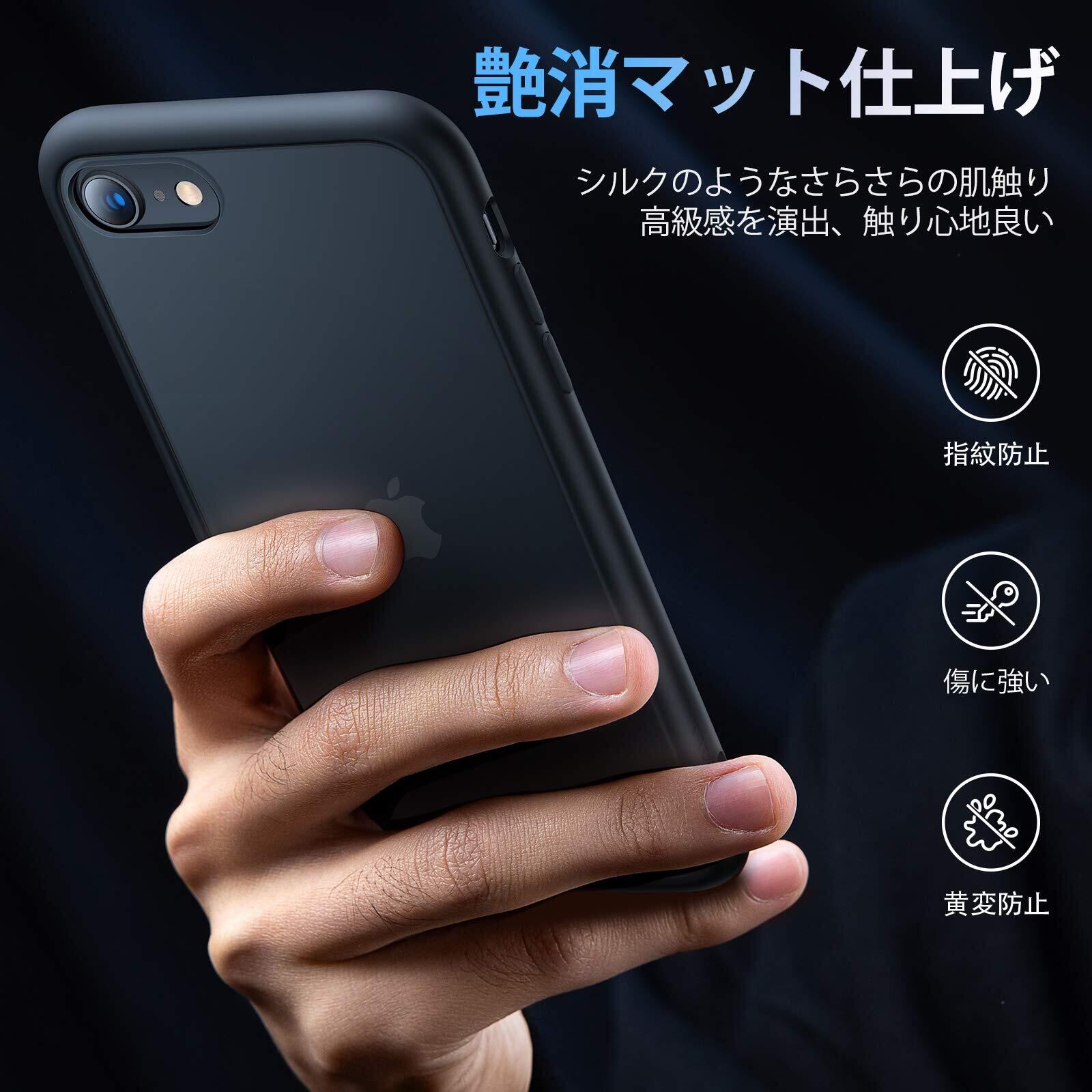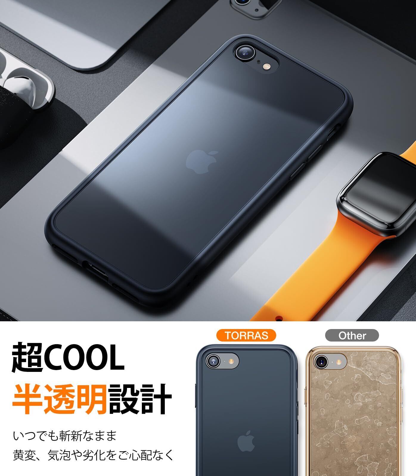 【2025米軍進化耐久性】TORRAS iPhone se se3 se2 8 7 ケース 半透明 耐衝撃 マット感 黄ばみなし レンズ保護 ストラップホール付き スマホケース iphonese第3世代 ケース アイフォン 7 8 se2 se3 se 用 4.7インチ カバー (マットブラック)