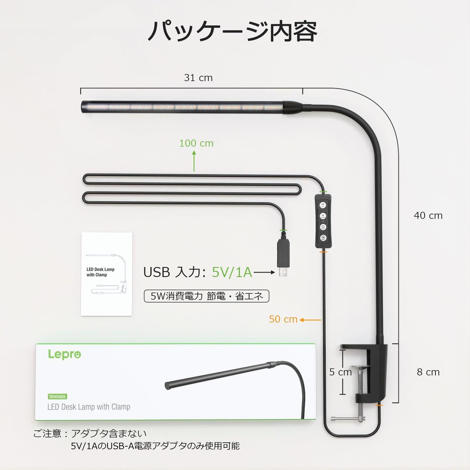 Lepro クランプライト デスクライト クランプ led 目に優しい 電気スタンド スタンドライト 【電球色・白色・昼光色/10段階明るさ/5W省エネ/明るい/Ra80演色/360°角度調整可能/独立ボタン制御/USB給電式/1.5Mケーブル】 テーブルライト 卓上照明 卓上ライト 台灯 学習机 勉強机 ライト ブックライト 読書灯 (ブラック)