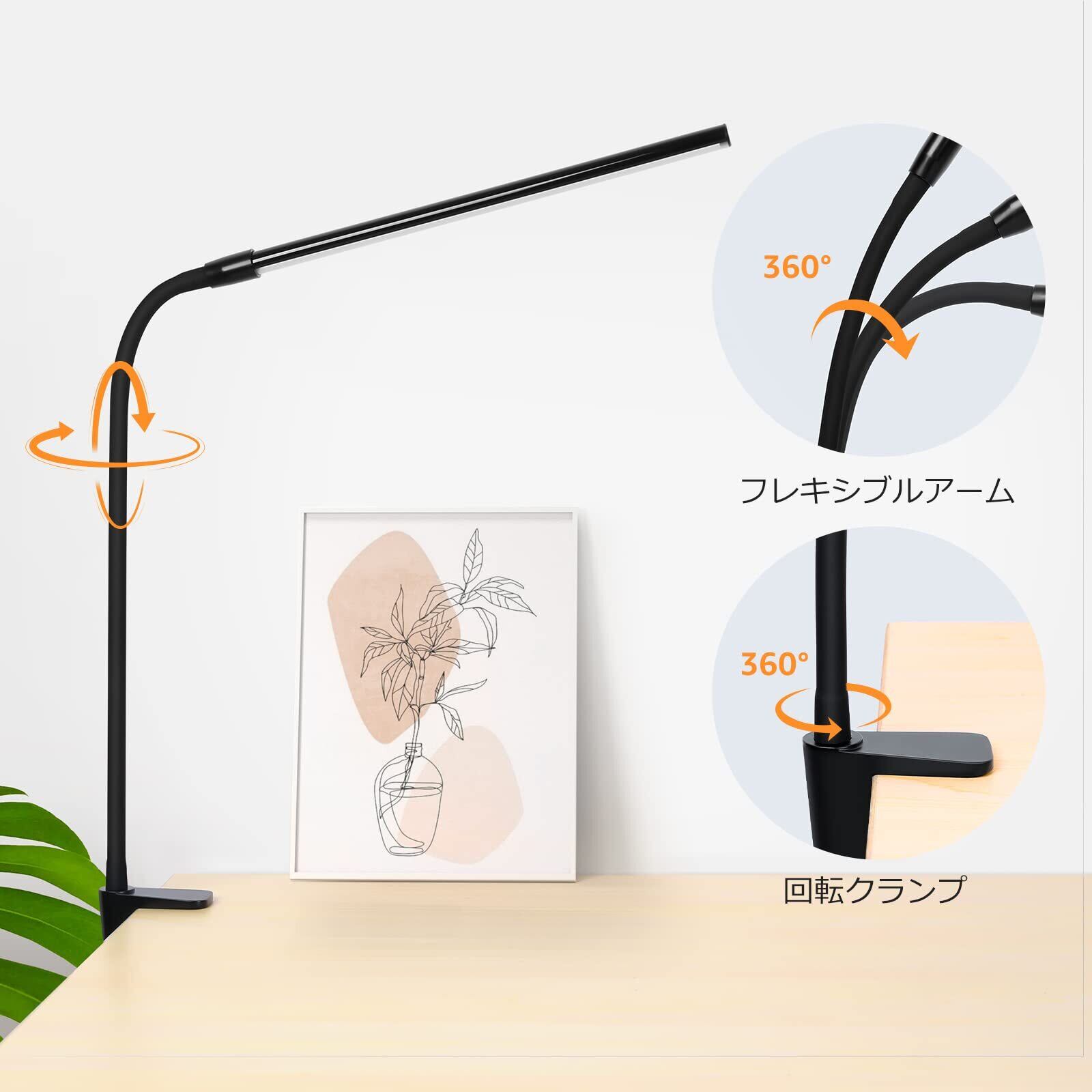 【フレキシブルアーム・広い照射面積】自由に動かせるアームと回転クランプを採用しながら、グランプライトを360度広範囲で自由自在に動かせます。任意の角度に調整して、デスク上を照らすLEDライトの光を最適化します。勉強や読書、ペインティングなどの細かい作業にも安心!