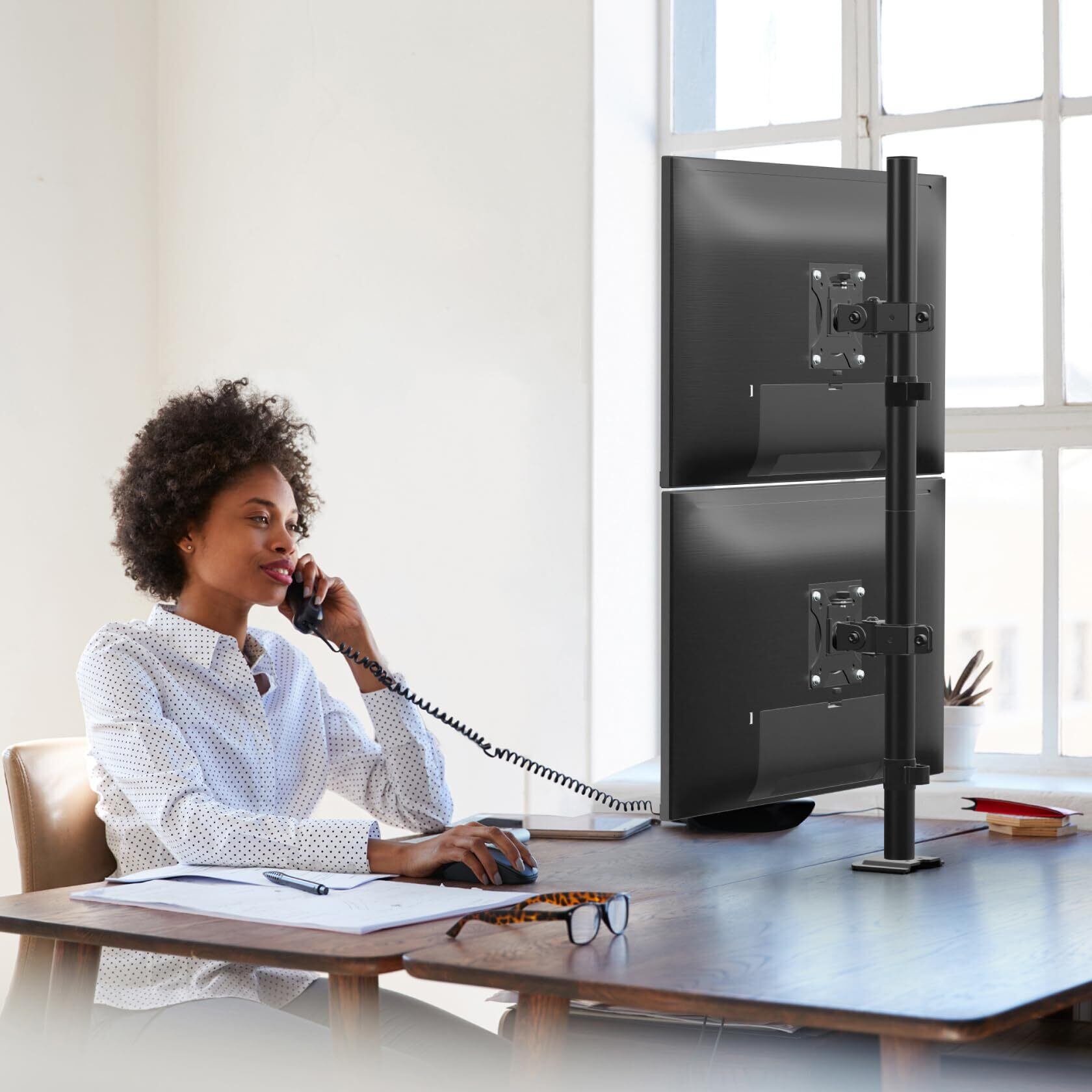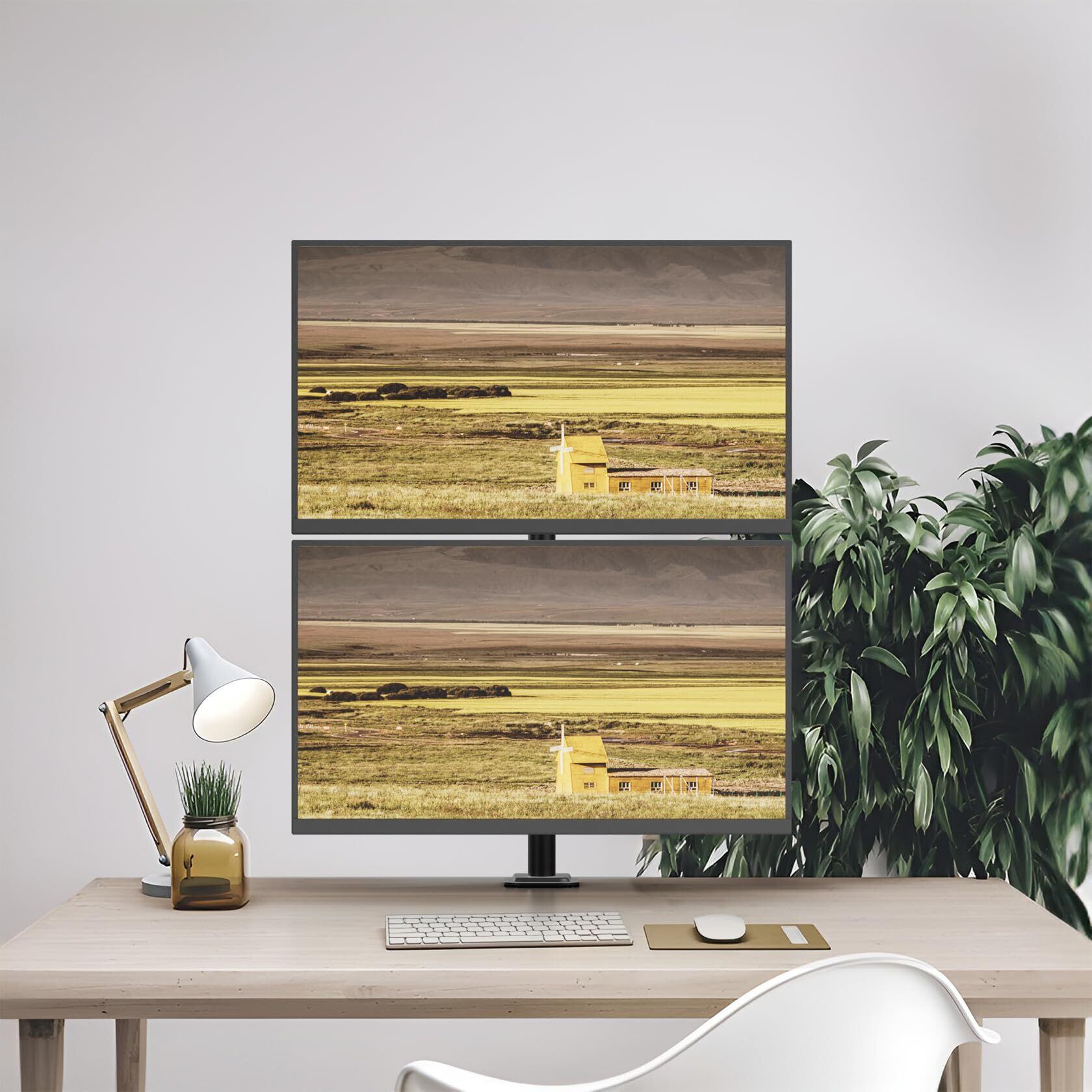 デスク上のスペースを有効活用:モニターを2台縦に設置でき、モニターの台座が不要になるため広々とデスク上を使用できます。ケーブル管理で机は清潔で綺麗に整理できます。使わないときはディスプレイアームをたたむことで机上がすっきりします。