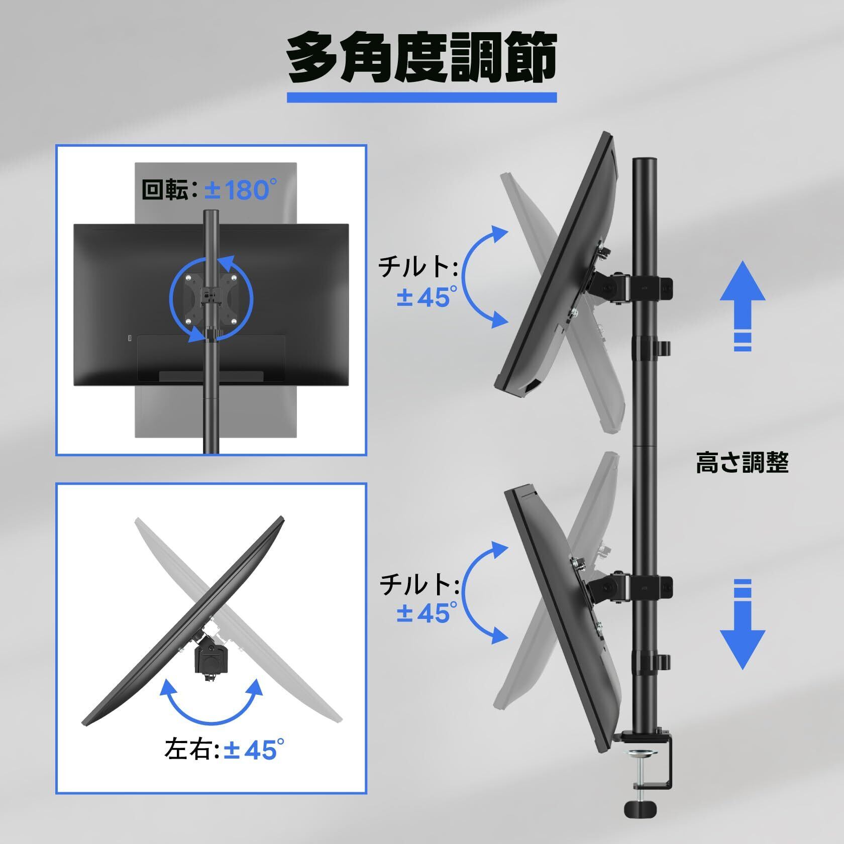 METIYA モニターアーム 上下2画面 デュアルディスプレイ スタンド 13-32インチ対応 耐荷重8kg(1台)グロメット式&クランプ式 VESA100*100 (ブラック)
