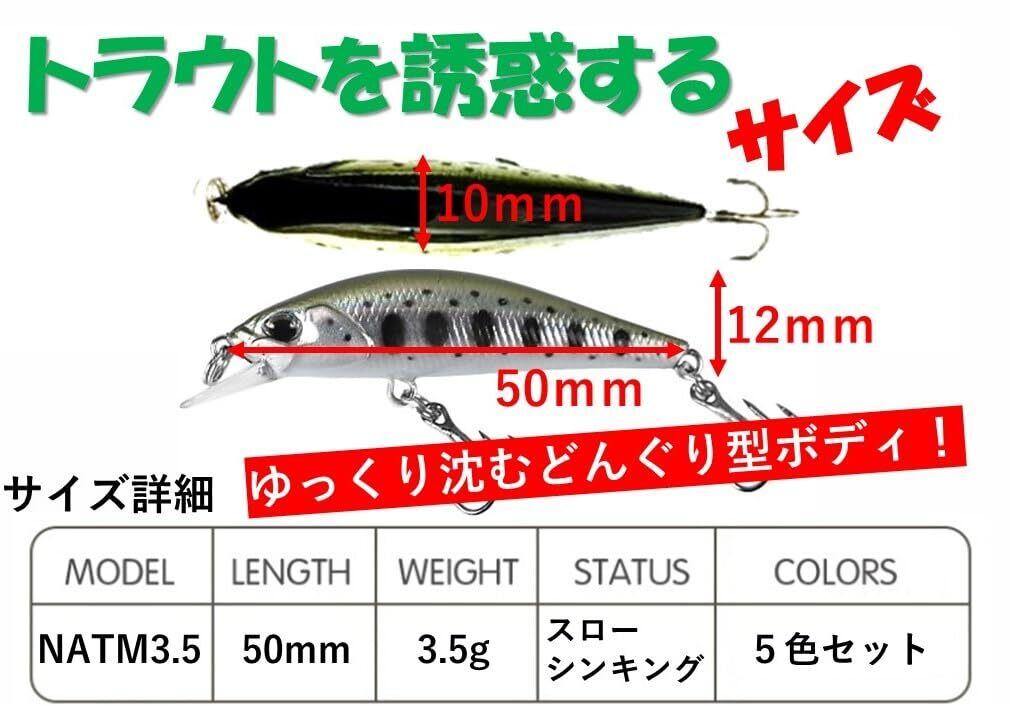 ナイトアーミー 釣具ルアー 3.5g トラウトミノー 5色 ルアーセット シンキングタイプ 渓流ミノー (3.5トラウトカラー)