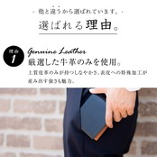【二つ折り財布】しっとりした独特の質感の牛革を使用。強度、耐久性だけでなく高級感を演出。裏地はお手入れが手軽な高品質マイクロファイバーとファブリック素材を使用。使用感と高級感を絶妙にブレンド。