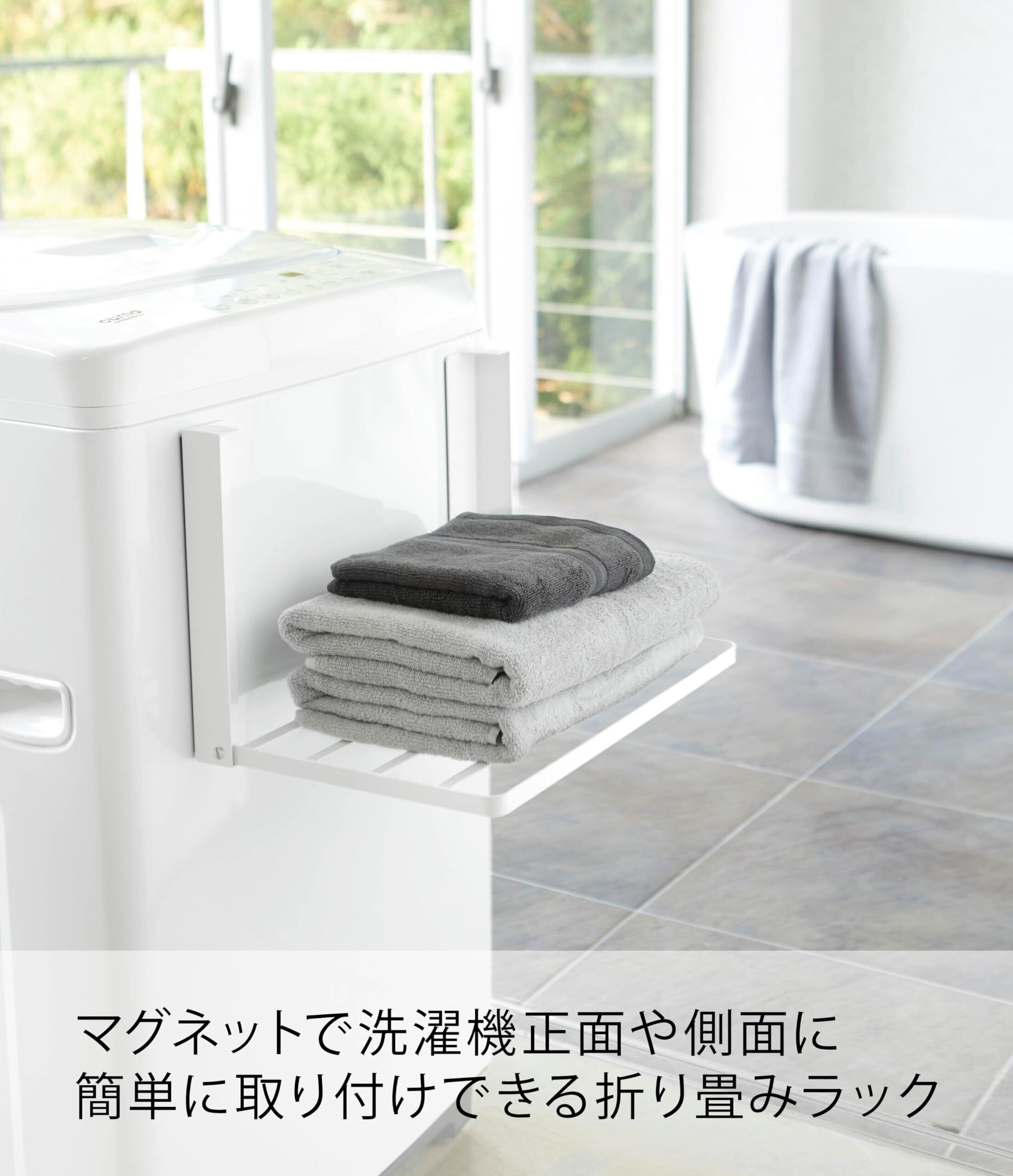 山崎実業(Yamazaki) 洗濯機横 マグネット 折り畳み棚 ホワイト 約W41XD27XH25.5cm タワー tower 省スペース ラック 折り畳み式 5096
