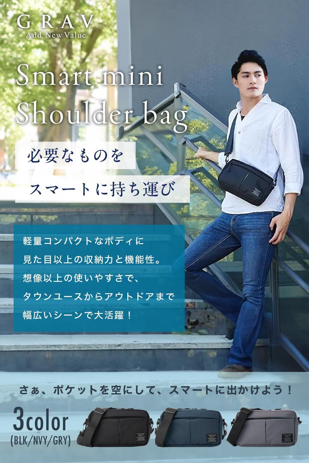 【GRAV】ショルダーバッグ メンズ レディース|小さめ 軽量 大容量|斜め掛け|防水 撥水|機能的なワンショルダー|タウンユースからアウトドアまで