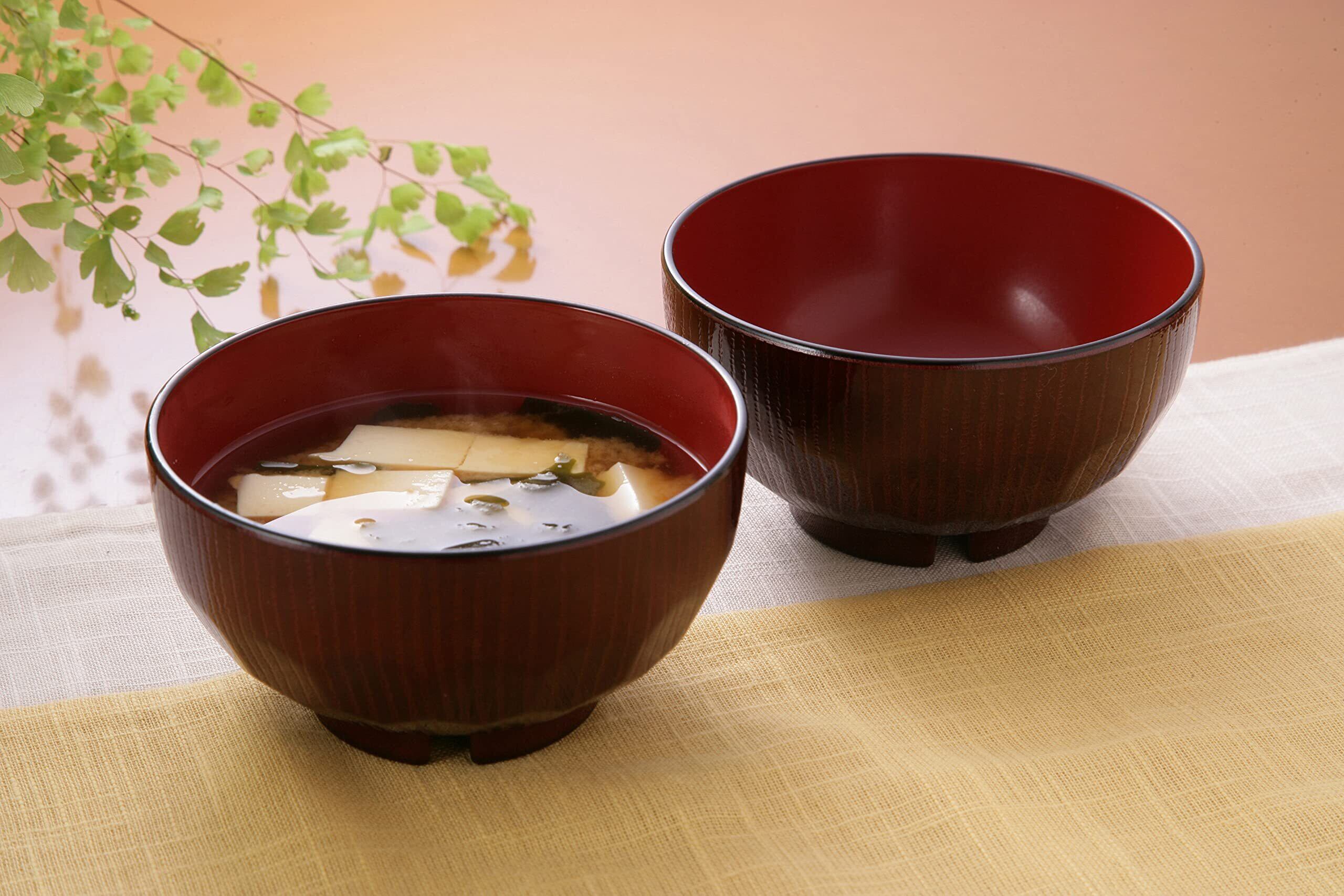 正和(Showa) 汁椀 お椀 味噌汁椀 食器 2個 ブラウンなど 380ml 山中塗レンジ・食洗機対応亀甲汁椀(溜め・2個組)
