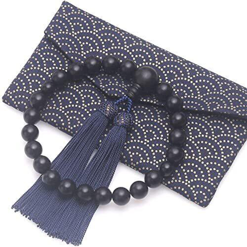 [レオビ- ストア] LEOBEE 数珠 男性用 縞黒檀(艶消) マグネット式数珠袋付き 念珠 じゅず 葬式 葬儀 墓参り 法事 念誦 全ての宗派に使用可能