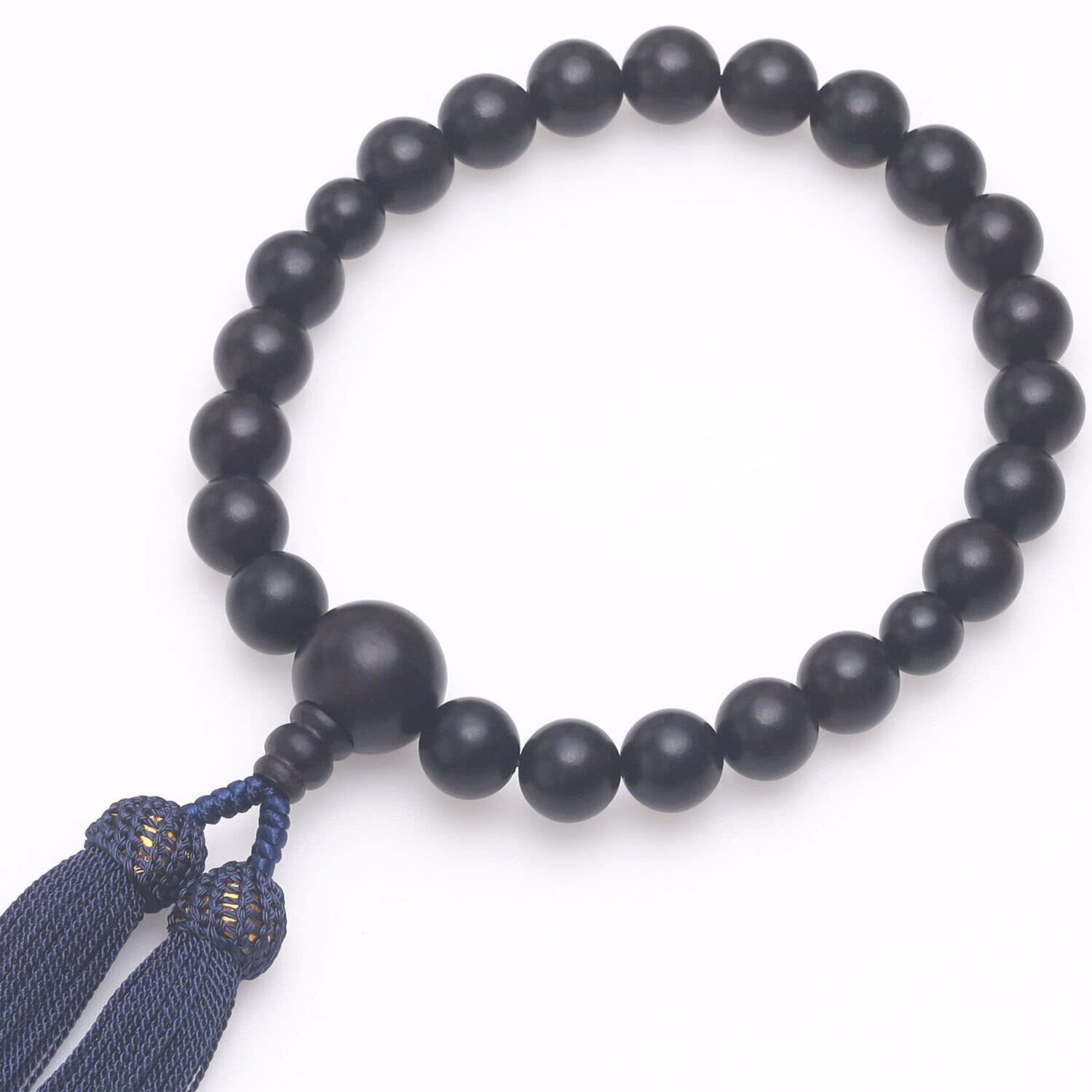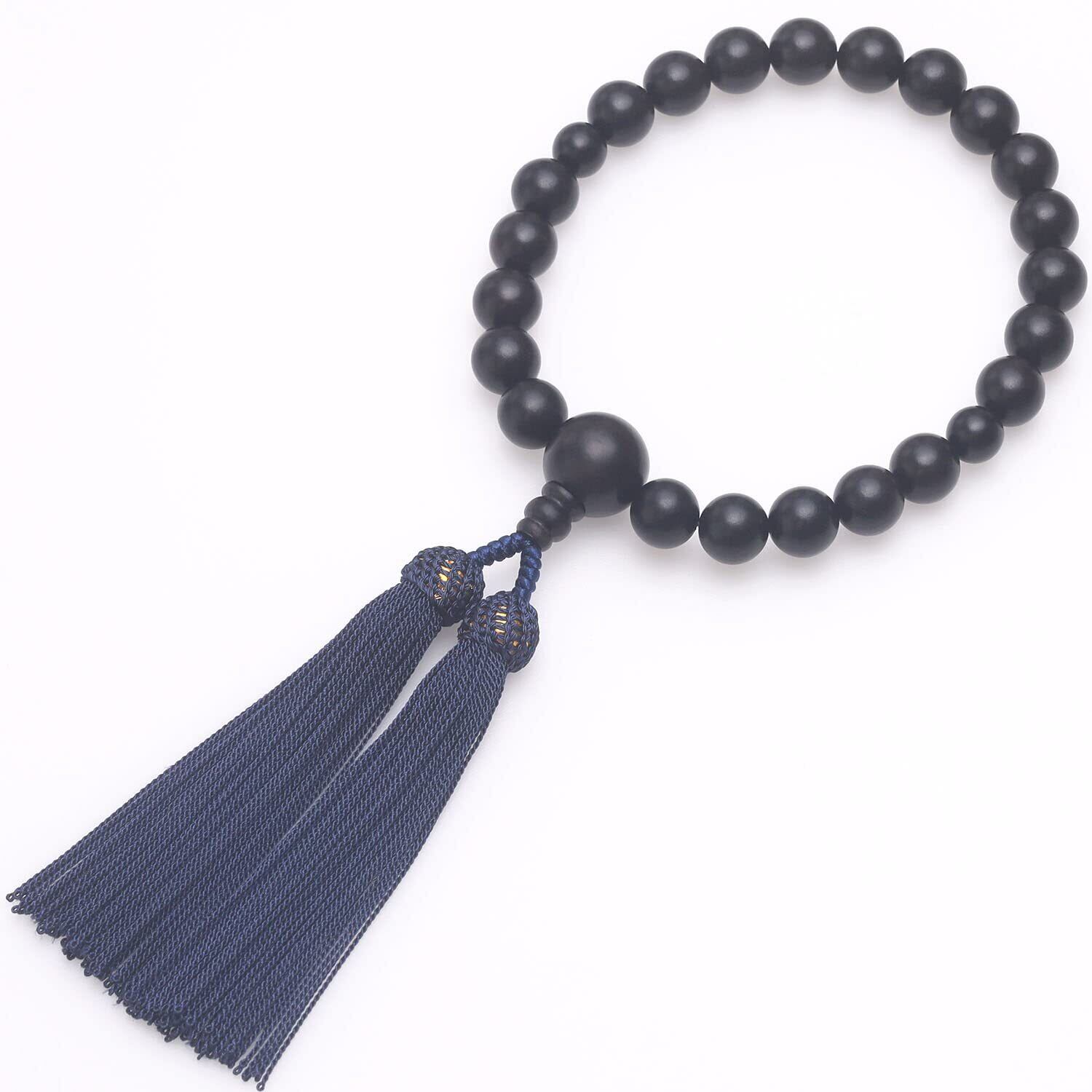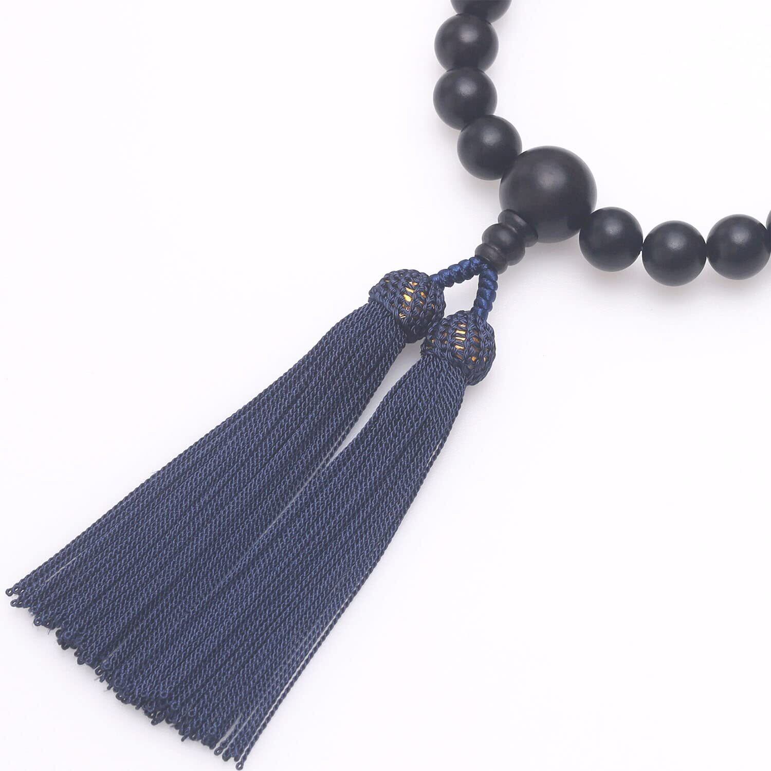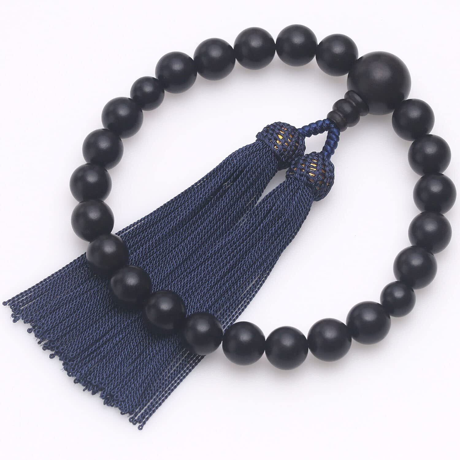 【程度よく重み&サイズ】重みがあり、手触りもよく、男性が手にするのにぴったりサイズです。主玉:縞黒檀12mm、天玉:縞黒檀10mm、親玉:縞黒檀18mmとなります。頭付房(鉄紺色)。