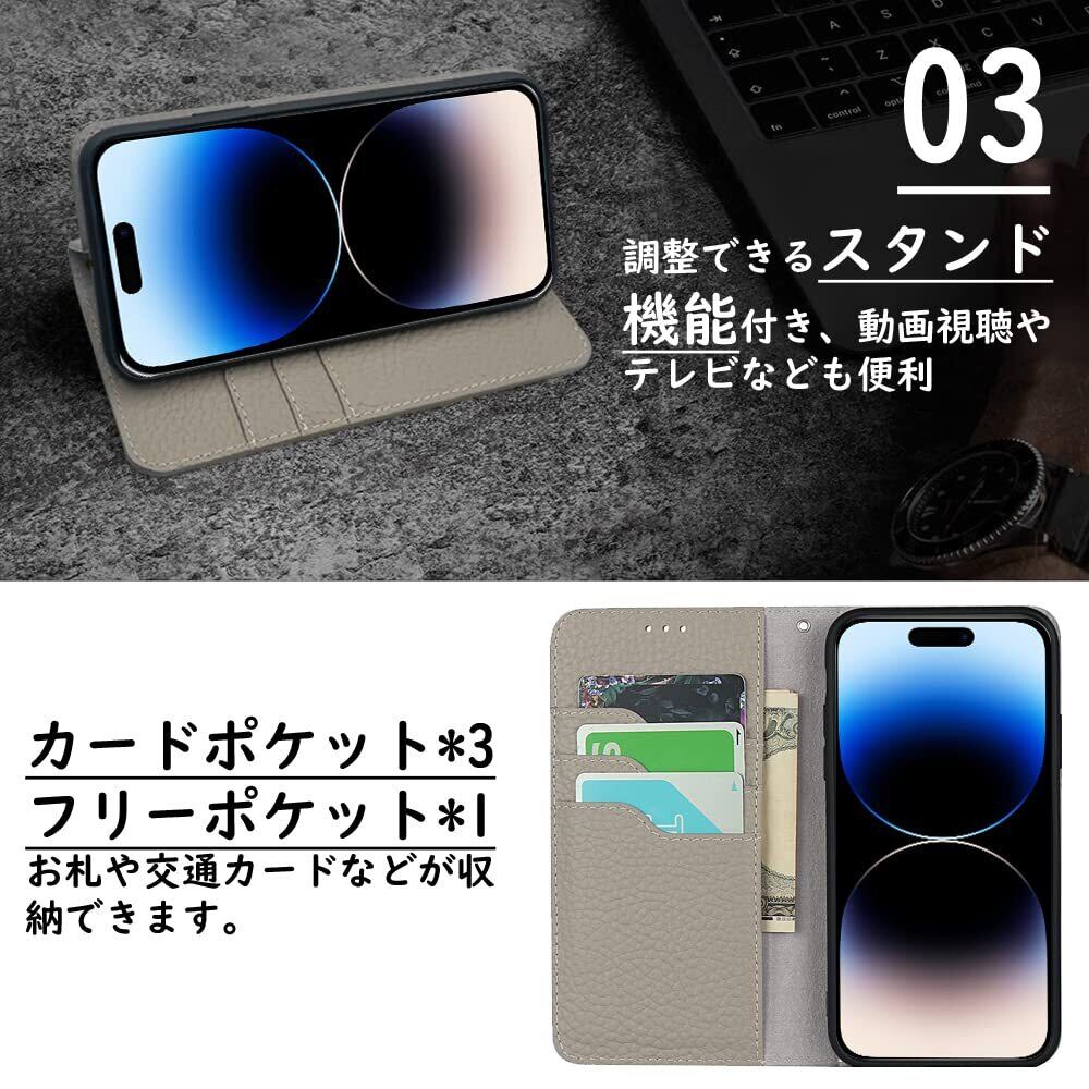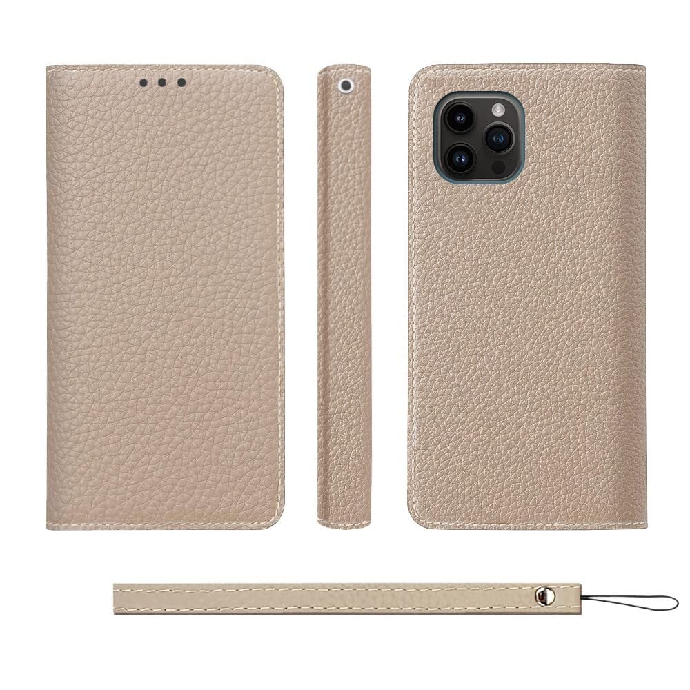 CLICSUN iPhone14 Pro 対応ケース 高級牛本革ケース 手帳型 iPhone14 Pro 対応カバー 本革 レザー アイフォン14 Pro 対応カバー スタンド機能 ストラップ付き マグネット式 カードポケット ギフトボックス付き グレー