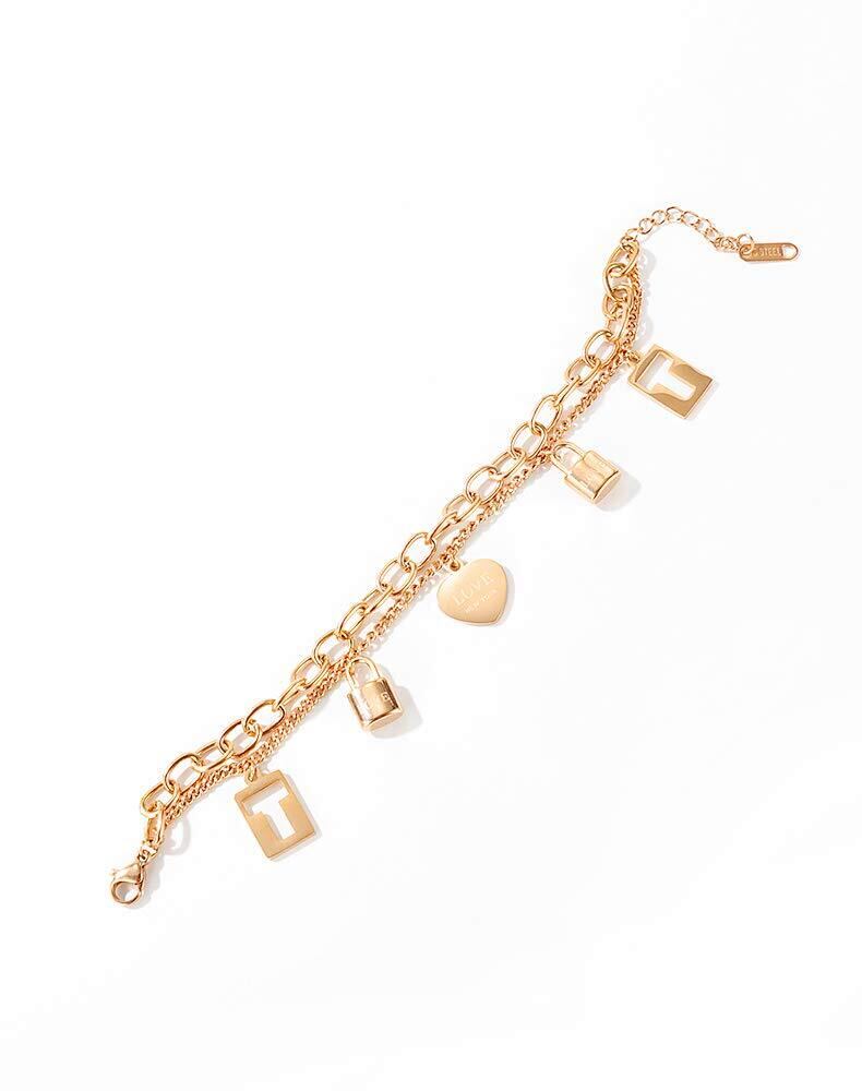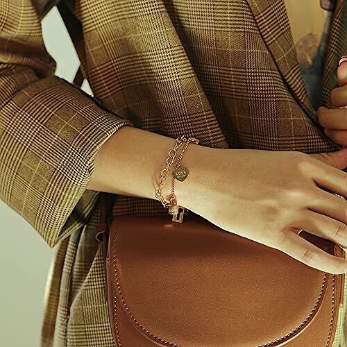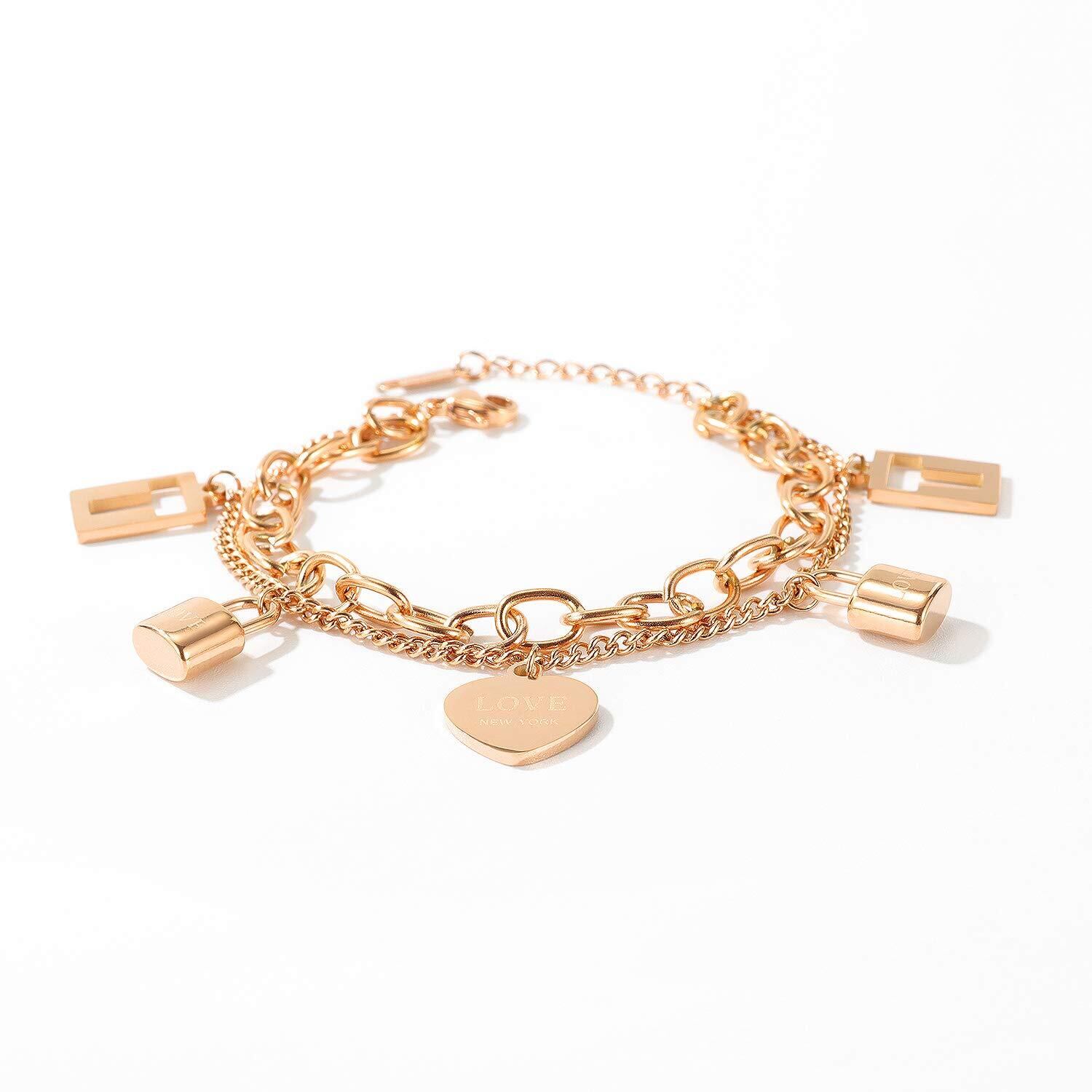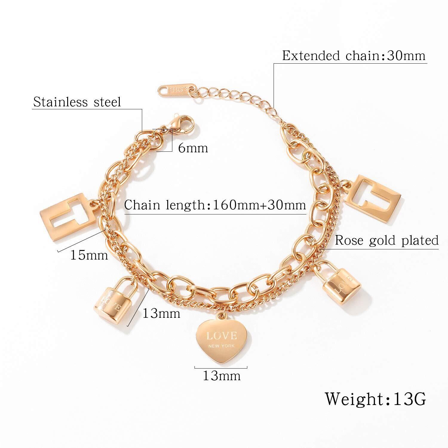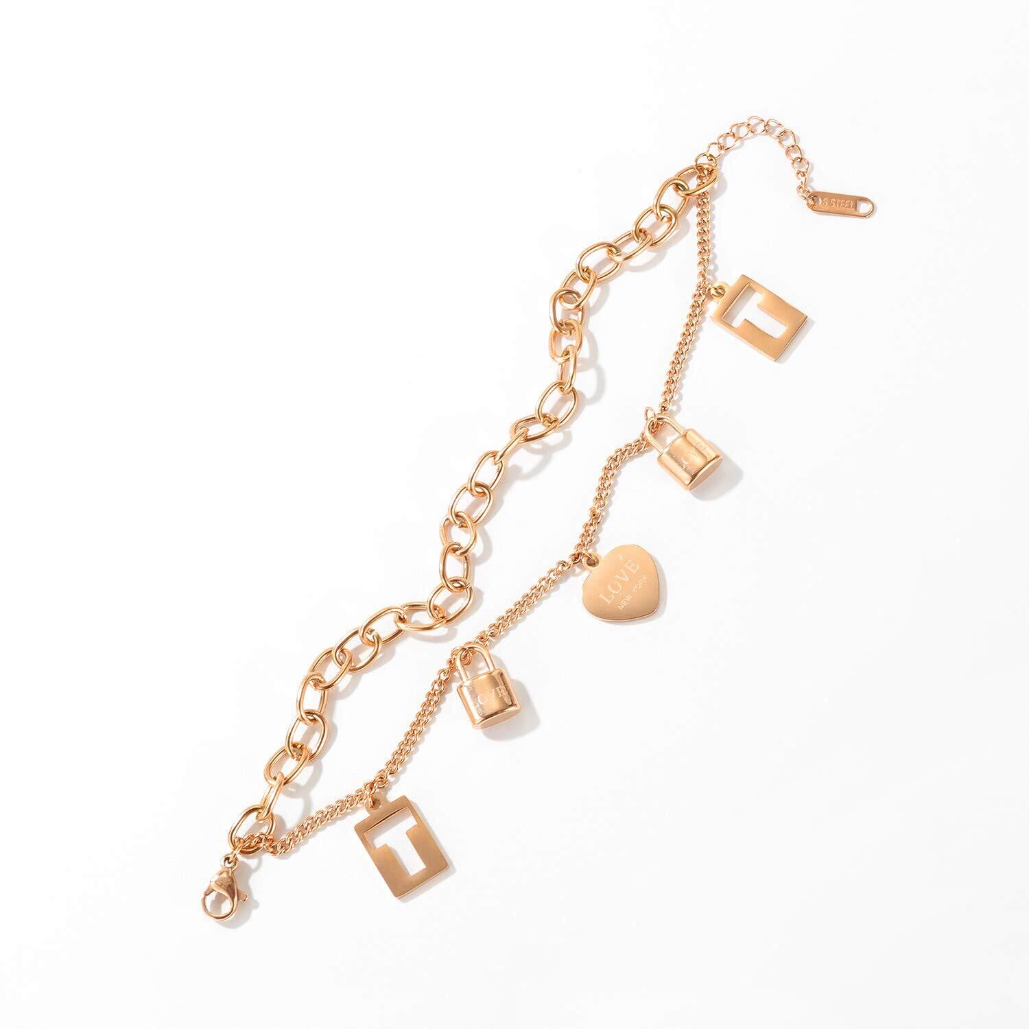【Deelfel ブレスレット】ブレスレット レディース ローズゴールド イニシャル ハートシェイプ キー 2チェーン 【素材】チステンレス ローズゴールド 【サイズ】:チェーンの長さ:160+30mm 【重量】:13g