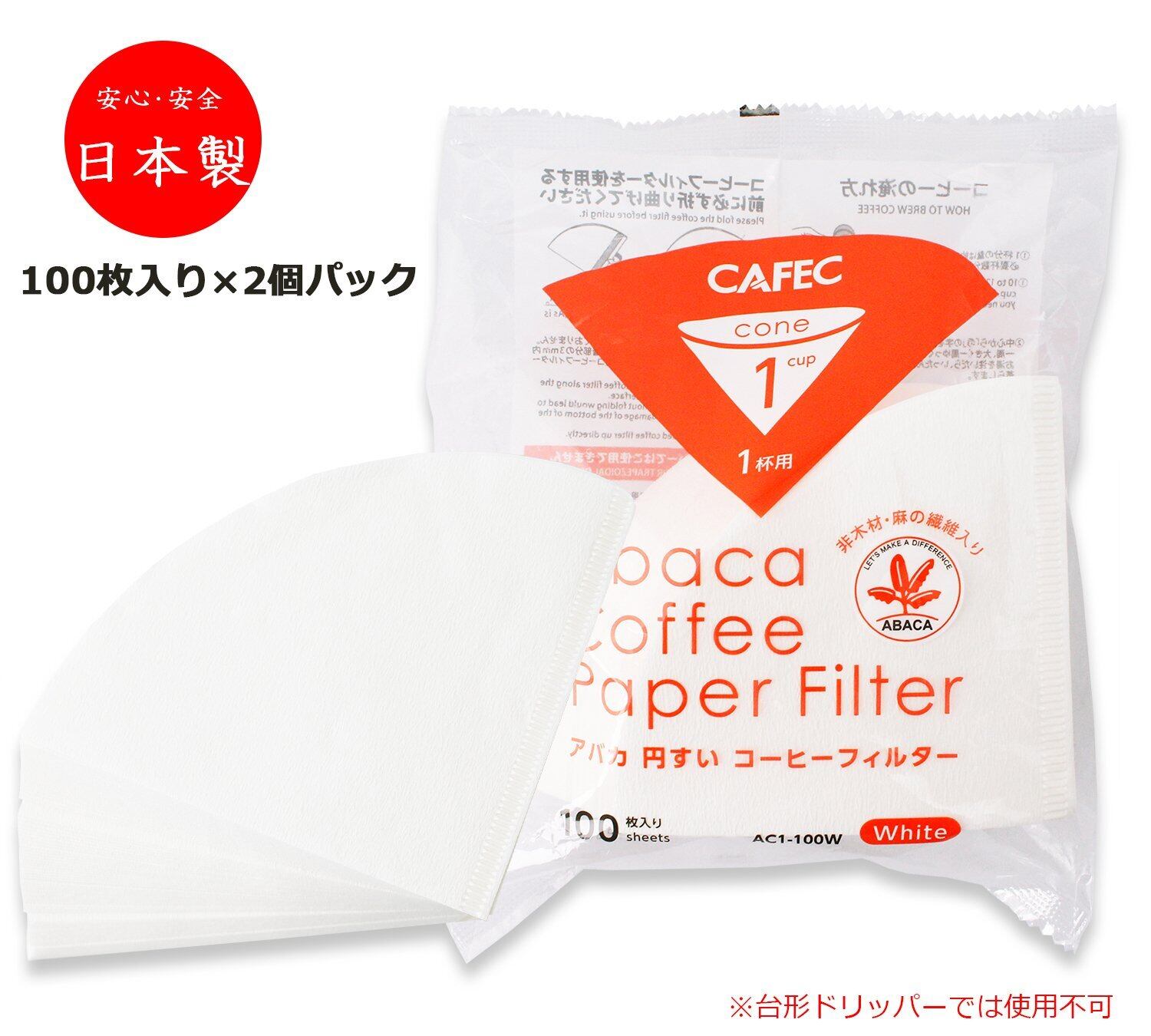三洋産業 コーヒー フィルター アバカ 円錐形 1杯用 100枚入 2個パック 白 計200枚 AC1-100W