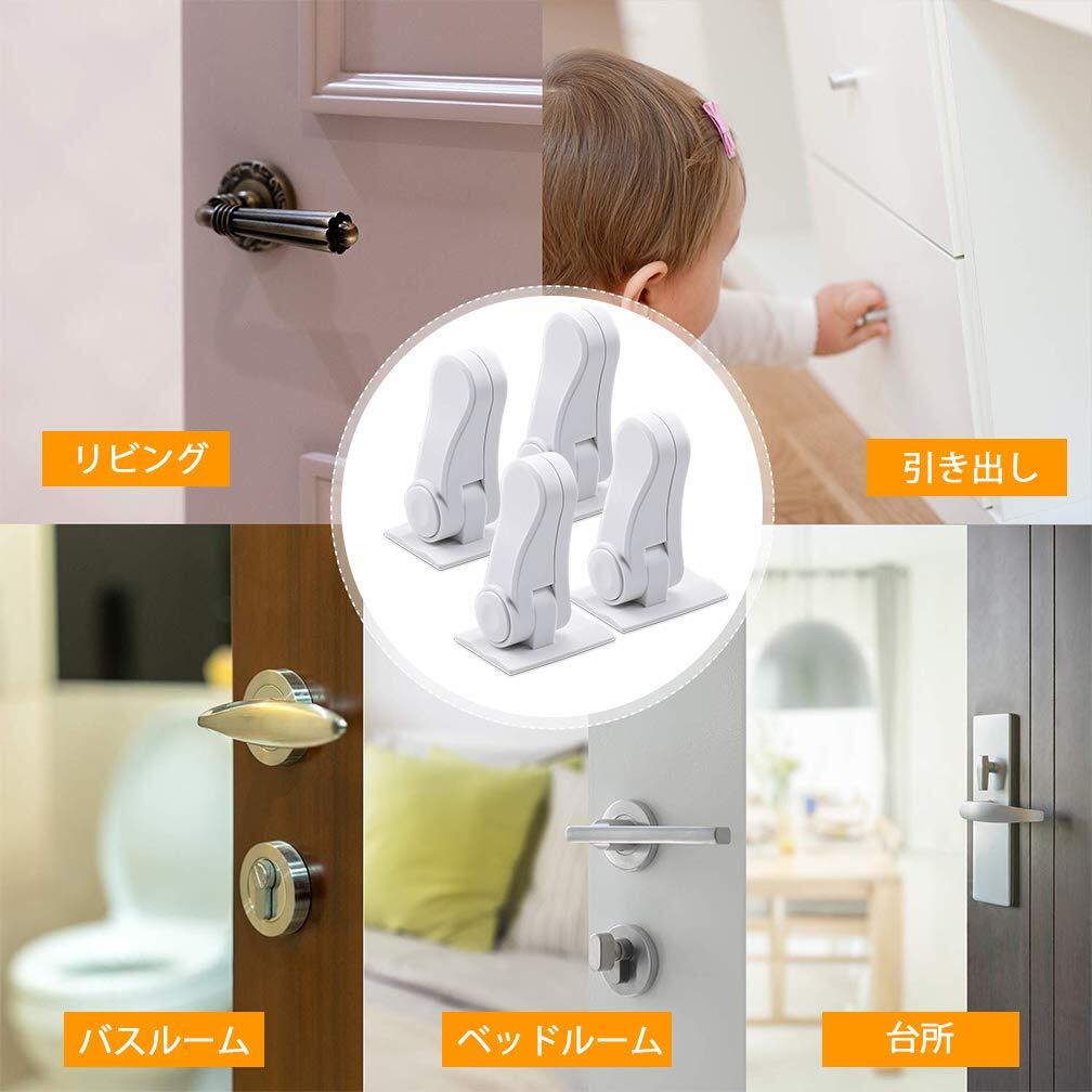 ベビーガード 4個入り ドアロック 引き出しロック 安全ロック チャイルドロック ドア 扉 キャビネット 窓 戸棚 開閉禁止 180°回転式 簡単操作 赤ちゃん ペット用 けが防止 指はさみ防止 いたずら防止 地震対策