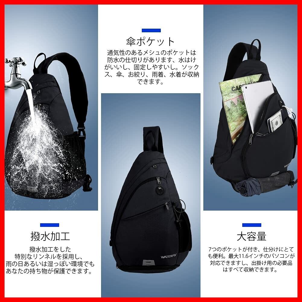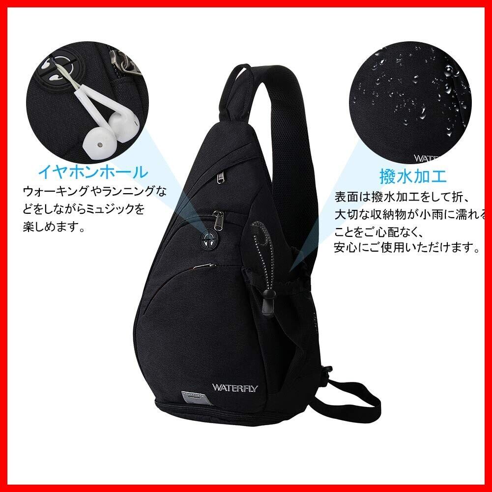 [ウォーターフライ] ボディバッグ ワンショルダーバッグ 斜めがけ 大容量 軽量 イヤホン穴付き ショルダー付替え可能 スポーツ アウトドア サイクリング カジュアル 旅行