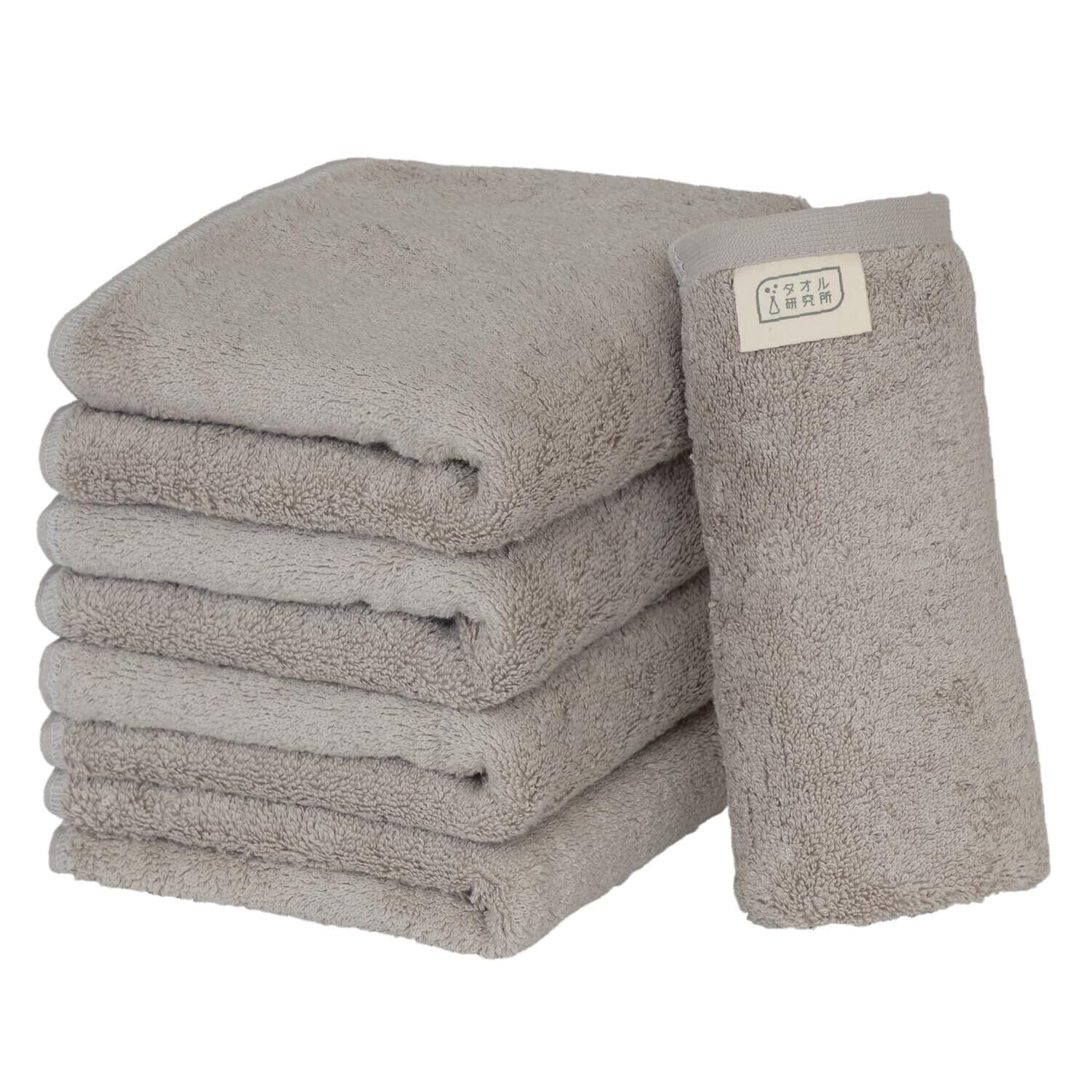 タオル研究所 [ボリュームリッチ] #003 フェイスタオル ライトグレー 5枚セット ホテル仕様 ふかふか 高速吸水 綿100% 耐久性 毛羽落ち少ない 【選べる10色】 Japan Technology
