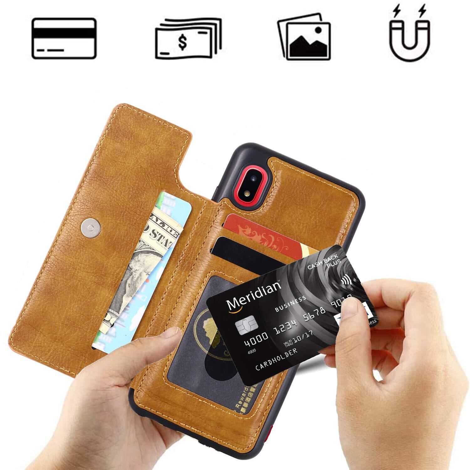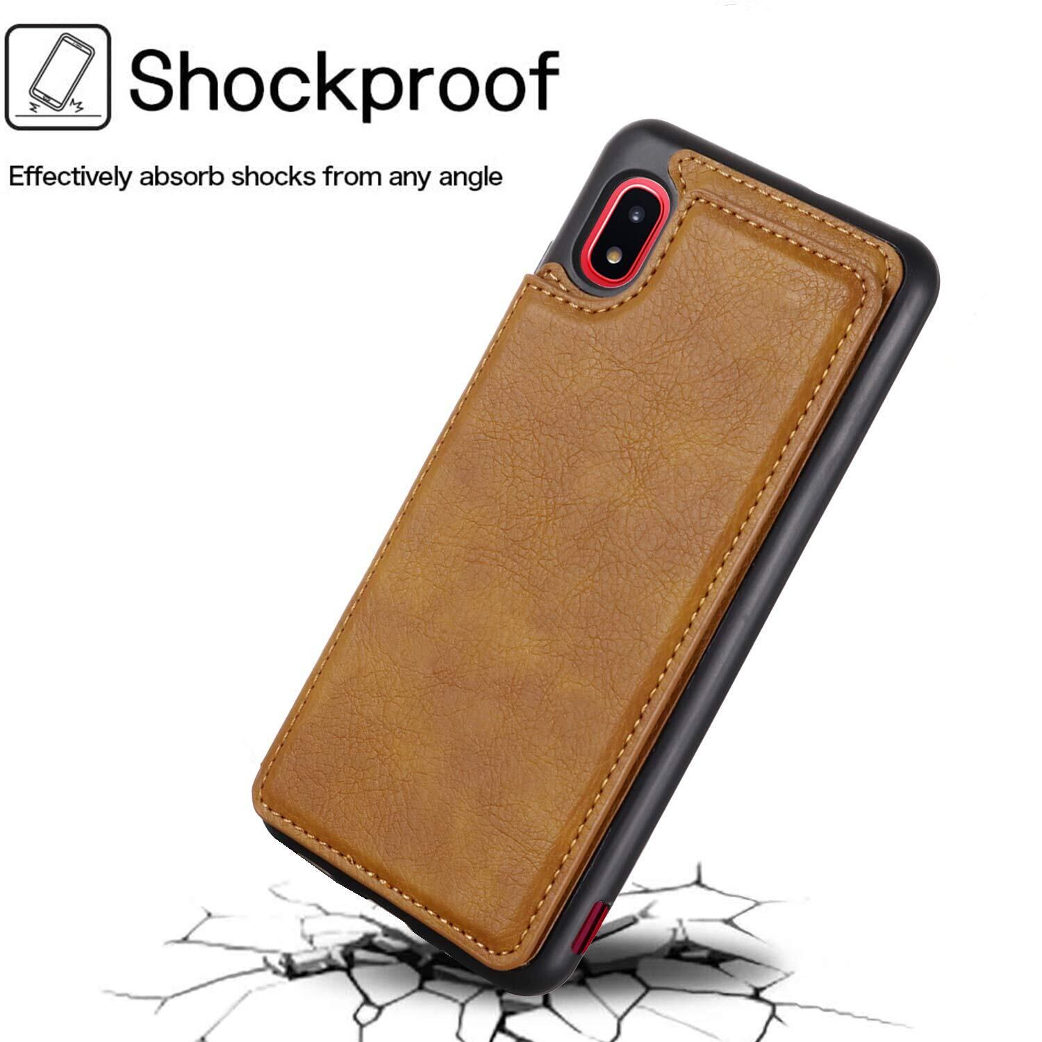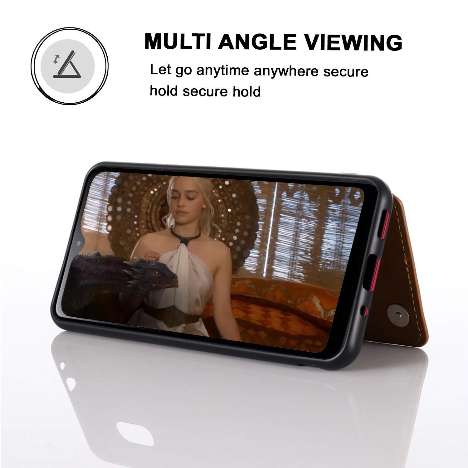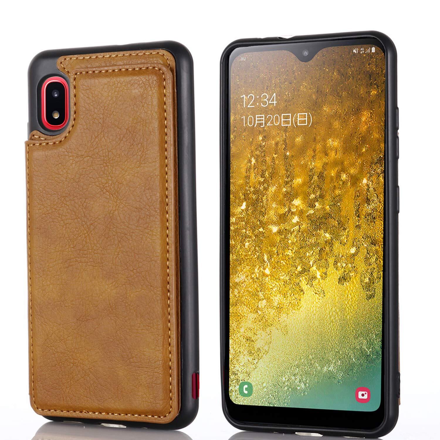 【 Viesa 】 背面カード 手帳型ケース Galaxy A20 / A21 / docomo SC-02M / SC-42A / au SCV46 対応 Samsung スマホ バックカバー ケース 手帳型 ( ブラウン ) 手作り 財布型 マグネット 薄 軽量 ポケット収納付き 背面カバー 手帳 横置きスタンド機能 背面型ケース サムスン ギャラクシーa20 a21 ドコモsc02m sc42a scv46 KHAKI