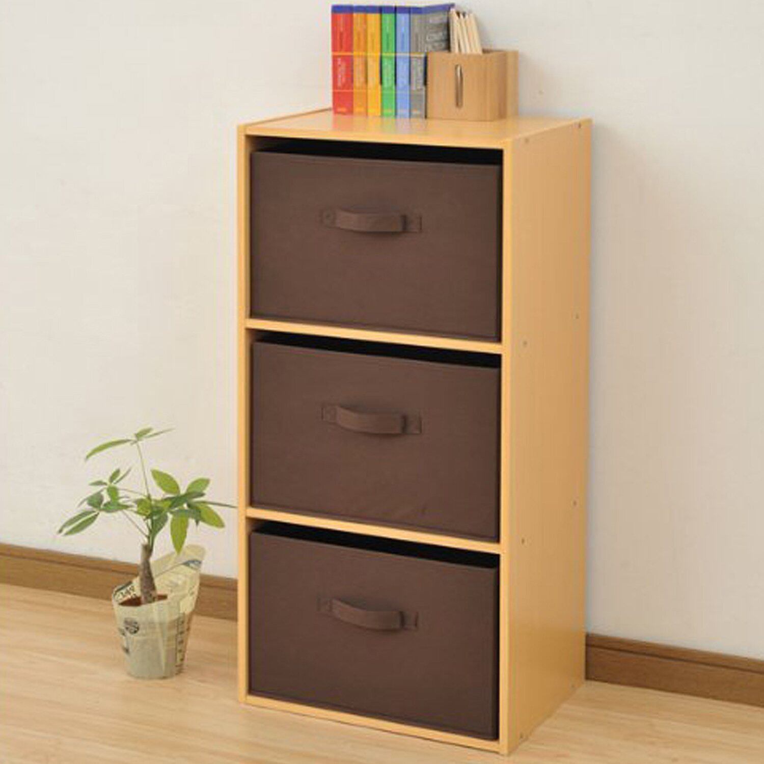 山善(YAMAZEN) どこでも収納ボックス 折り畳み 【3個セット】 取っ手付き カラーボックス対応 衣類 収納 完成品 幅38×奥行25×高さ25cm ケース ブラウン YTCF-3P(BR)