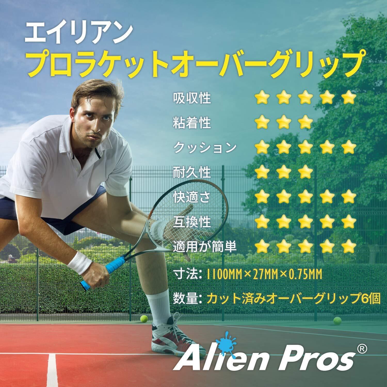 Alien Pros テニスラケットグリップテープ(6グリップ)– プレカット、ドライタイプのテニスグリップ – テニスオーバーグリップテープ、テニスラケット – ラケットに巻いて、高性能にしましょう(6グリップ,ブルー)