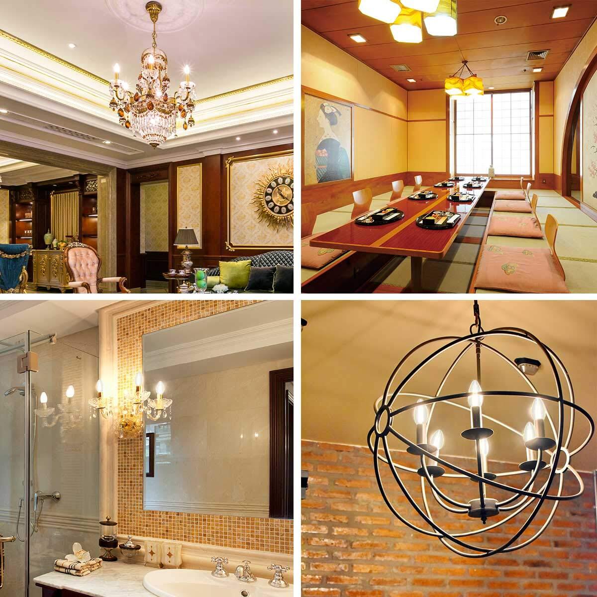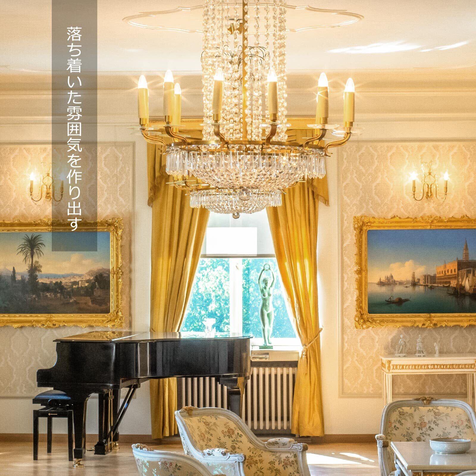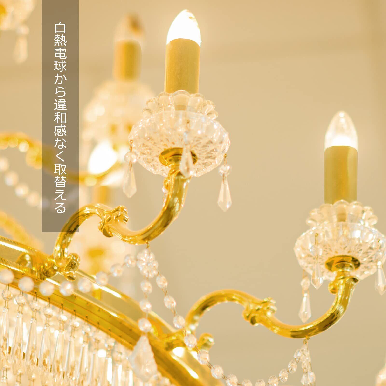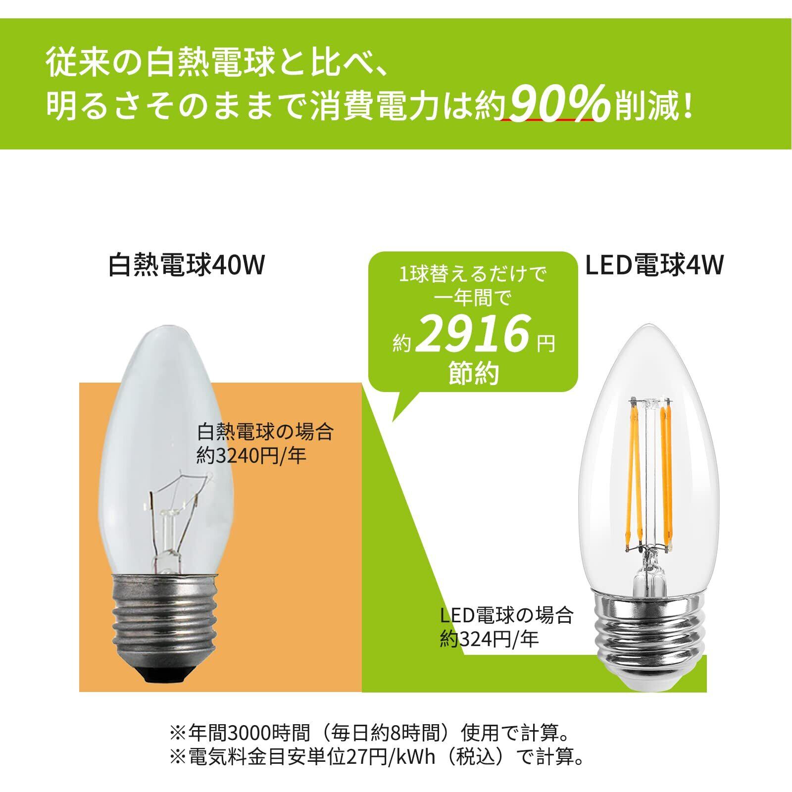 【e26シャンデリア風LED電球】◉E26口金 40W形 ◉4W省エネ、白熱電球より90%節電可 ◉全配光・クリアタイプ ◉色温度:2700K電球色 ◉明るさ:470lm ◉Ra>80 ◉口金サイズ:26mm ◉電球サイズ:直径35mm*高さ91mm ◉重量:約14g ◉材質:ガラス ◉定格電圧:100V 50Hz/60Hz