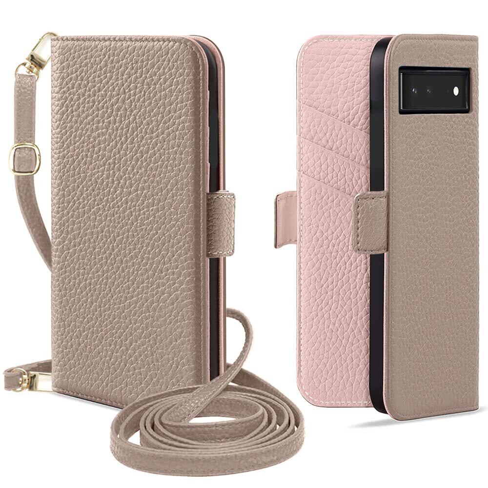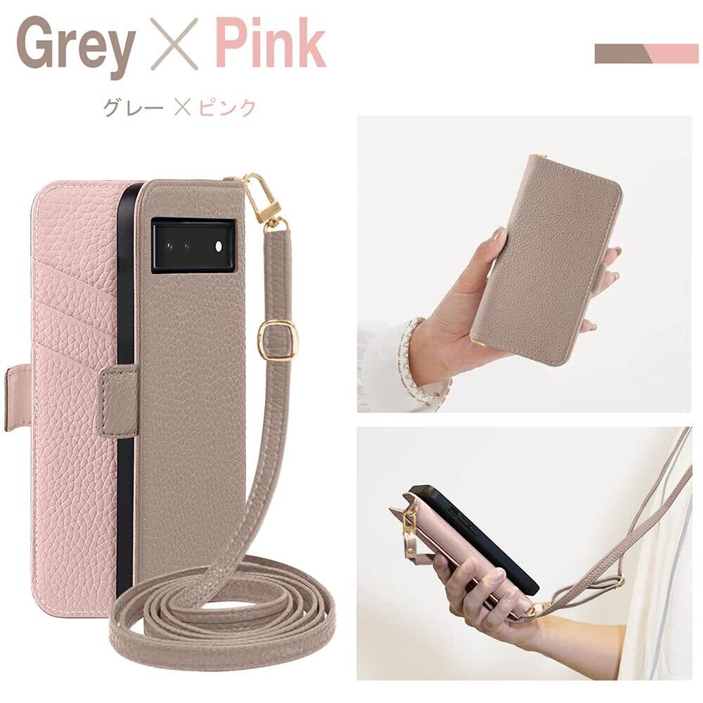 MAGICASE for Google Pixel 6A ケース 手帳型 ショルダー グーグルピクセル6a ケース 手帳型 おしゃれ 女性 ピクセル6a カバー 財布型 肩掛け カード収納 スタンド機能 マグネット式 スマホケースぐーぐるpixel6a 上品 高級PUレザー 全面保護 携帯ケース pixel 6a 耐衝撃 軽量 防水通気性 人気 バイカラー 6.1inch対応(グレー メ ピンク)