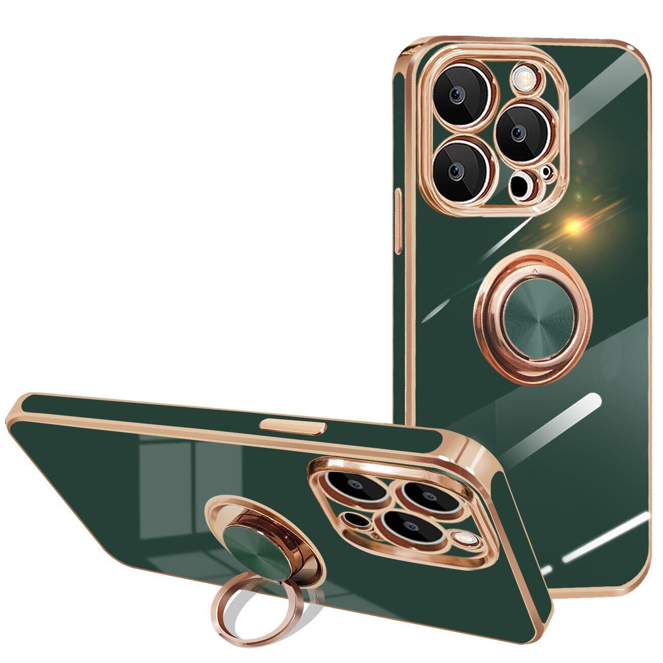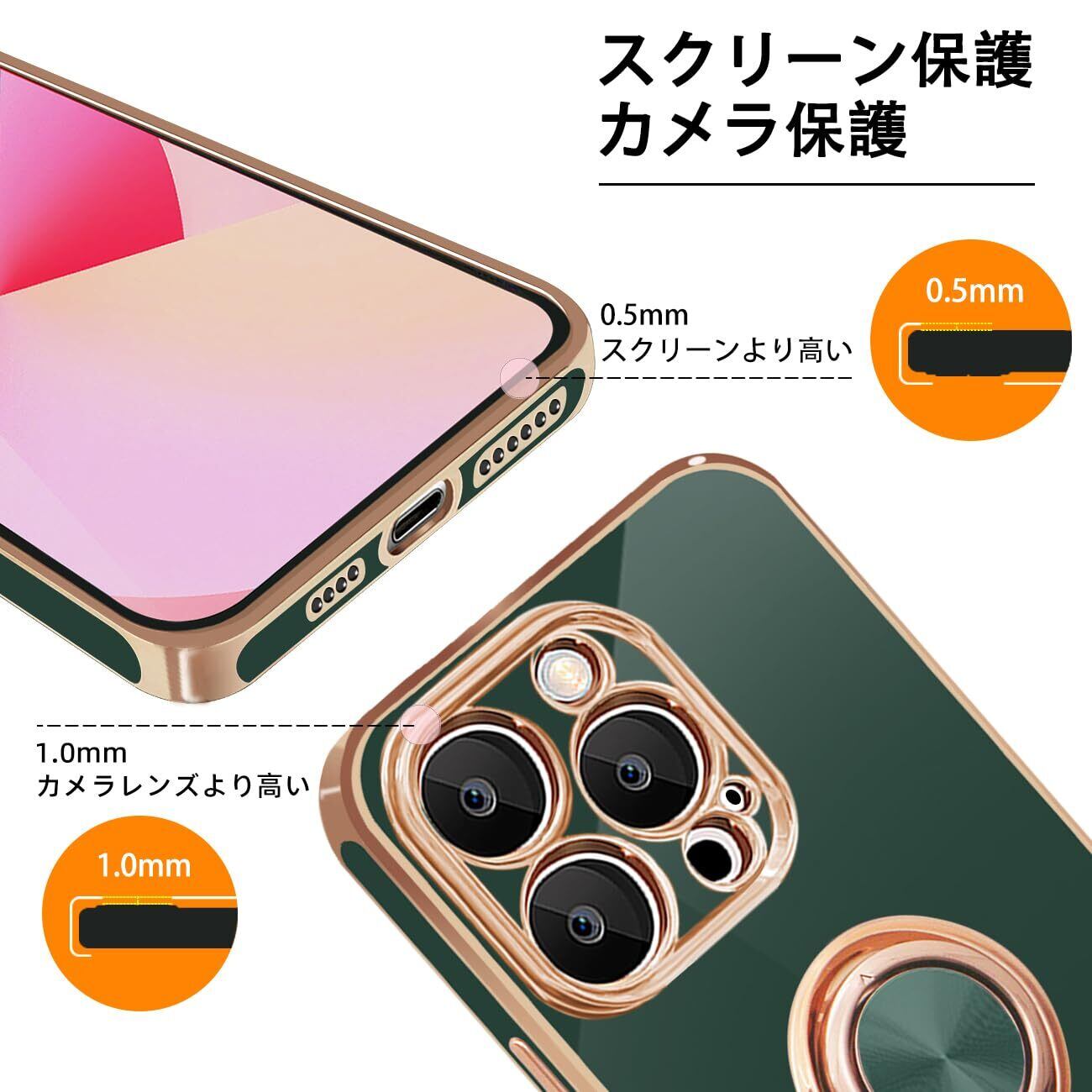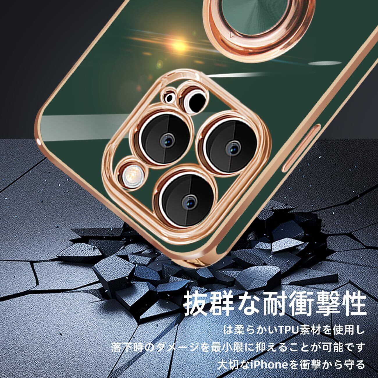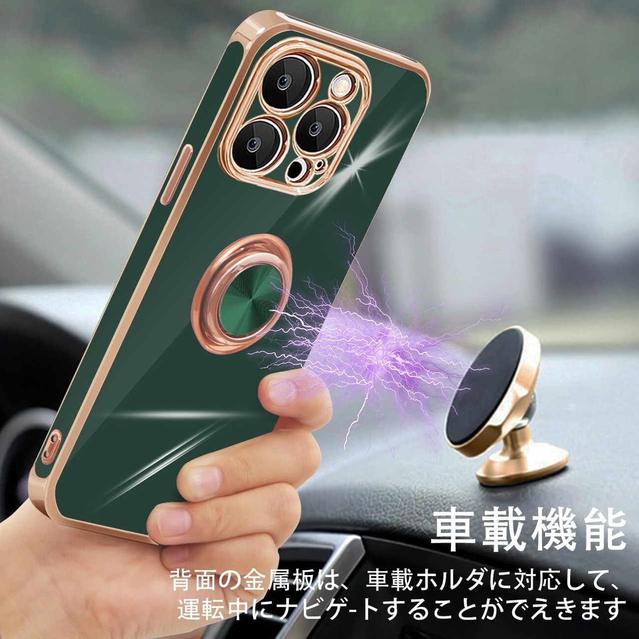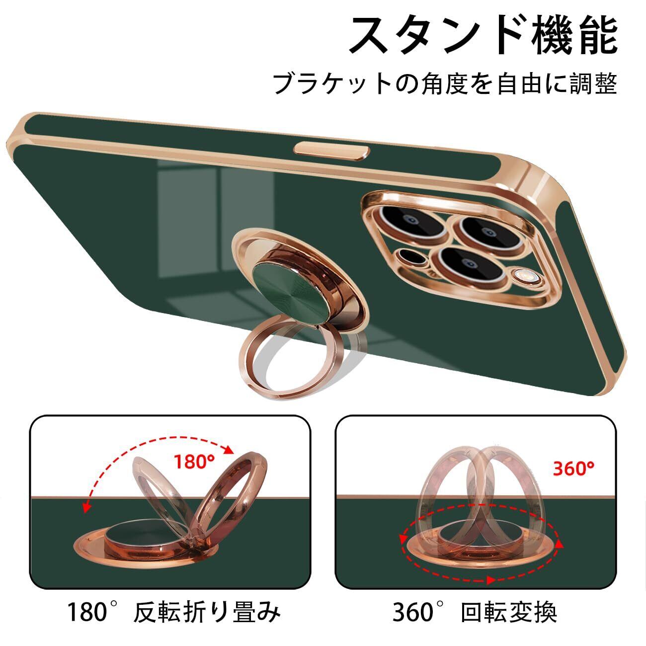 iPhone 14ProMax ケース リング付き 耐衝撃 カバー アイフォン 14ProMax ケース リング スマホケース ストラップホール付き 車載ホルダー対応 360°回転 スタンド機能 衝撃吸収 持ちやすい 柔軟 TPU いphone 14ProMax ケース 6.7インチ用 (グリーン)