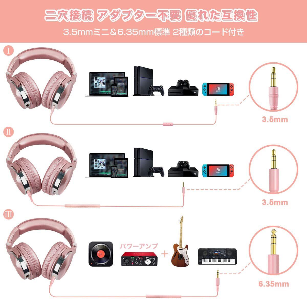OneOdio DJ用 ヘッドホン 有線 モニターヘッドホン 密閉型 ステレオ ヘッドフォン マイク付き