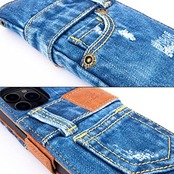 【本物のデニム生地】11ozデニム生地を使用し職人がiPhone14ProMax専用にジーンズ工場で一点一点全て手作りで仕上げたiphone14プロマックスケースです。長く使えば使うほどジーンズならではの味が出てきます。