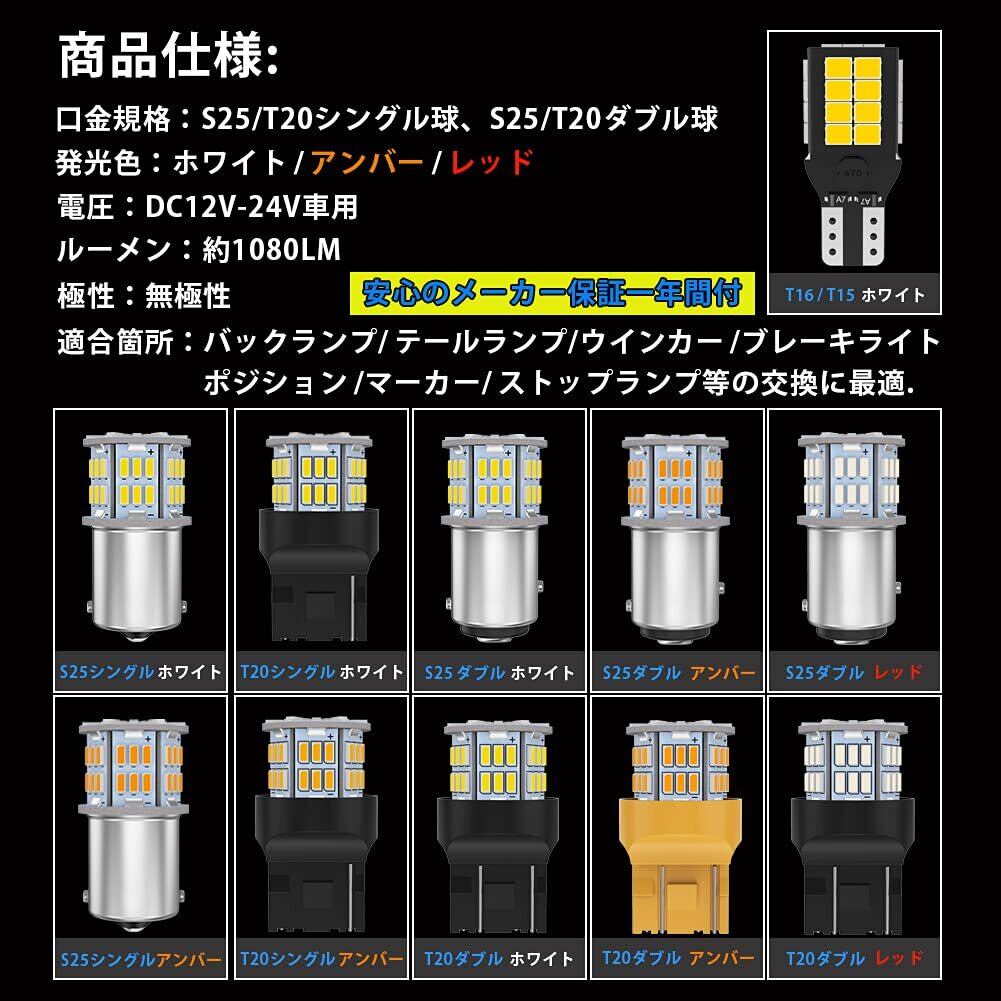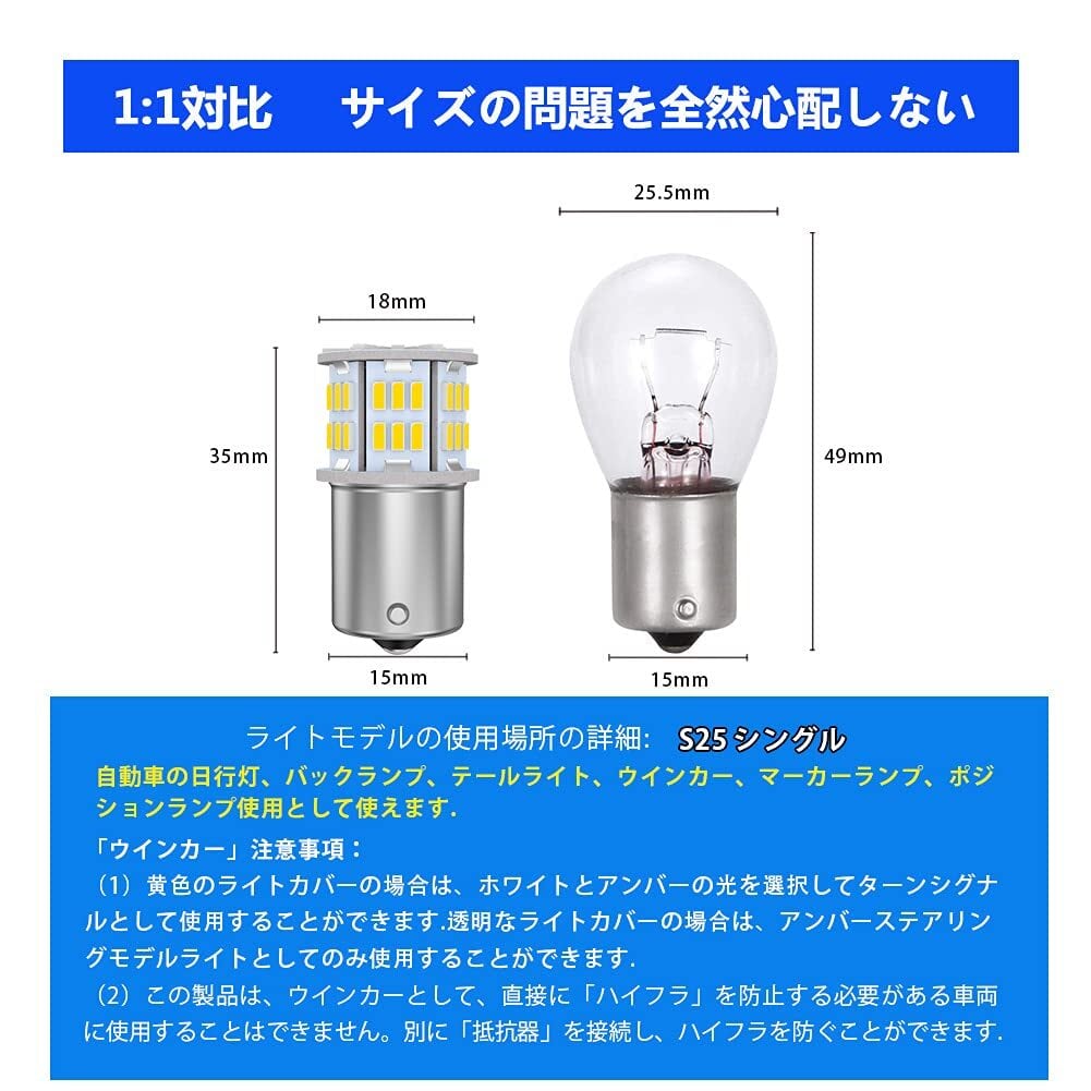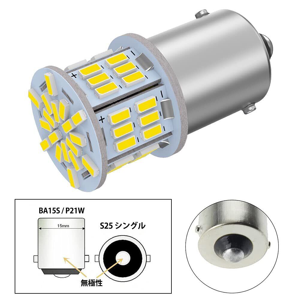 【形状】S25_180°(シングル)BA15S/P21W /1156/ G18 兼用、極性なし、12V-24V専用,1080LM/2個 54LED 3014SMD ホワイト 。