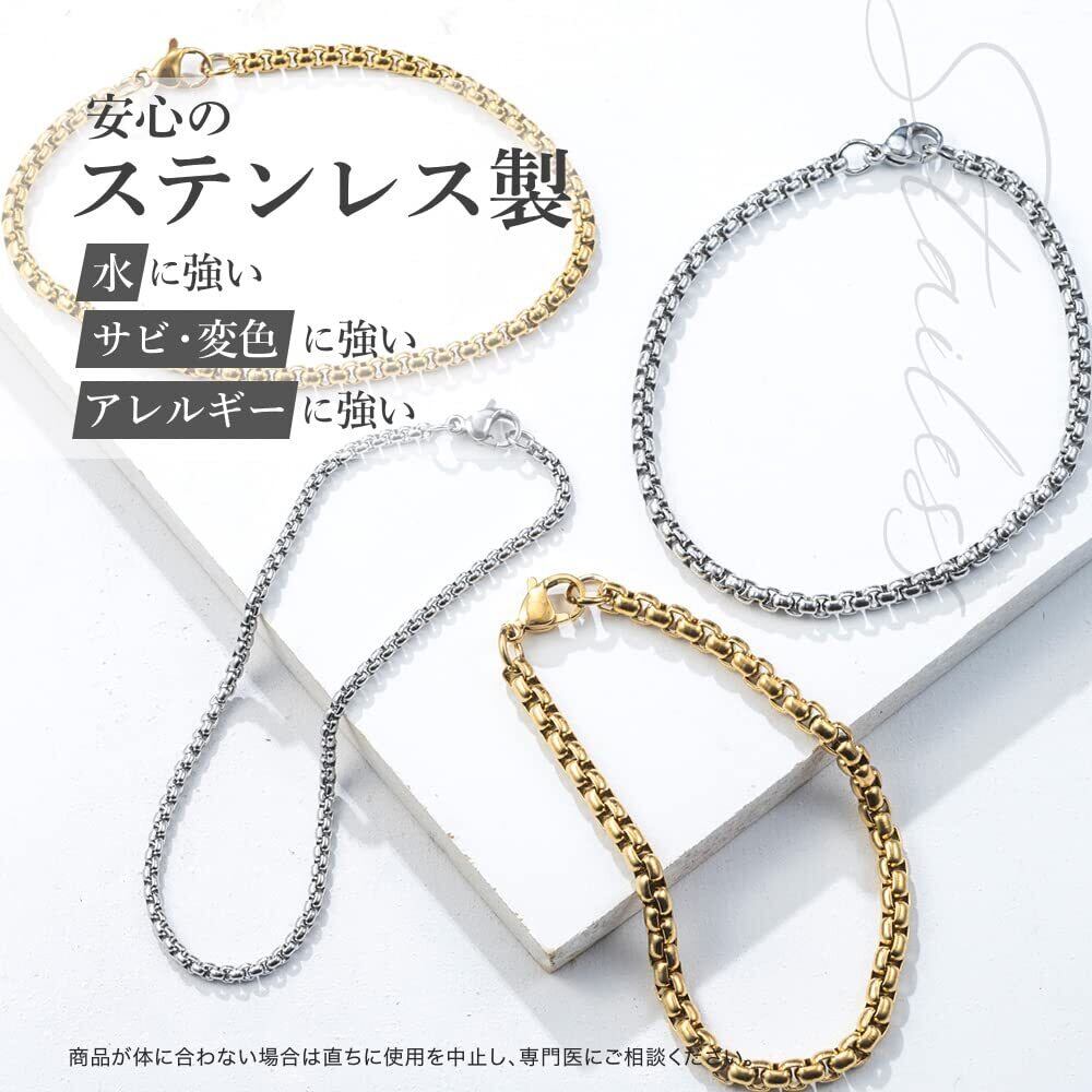 【バリエーション豊富18種類のカラー、サイズバリエーション】カラーがシルバー、ゴールドの2色。チェーン幅は2mm,3mm,4mm長さは17cm,18cm,19cmまで計18種類をご用意しておりますのでお好みのカラー、サイズのチェーンが選べます。メンズ、レディース兼用で着用できますので、ご家族、友人、カップルとペアで着用するのもおすすめです。
