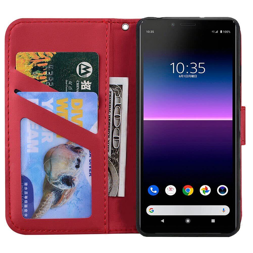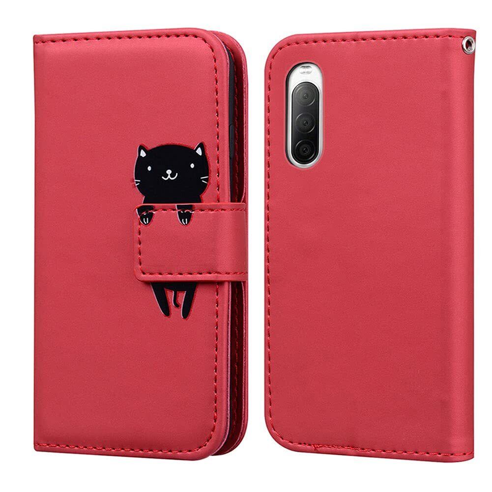 Ailisi 対応 Sony Xperia 10 II ケース手帳型 エクスペリア10 II ケース ソニーSO-41A docomo SOV43 au ケース 女性 人気PUレザー財布型 可愛いカバー 黒猫 かわいい 動物 耐衝撃保護ケース スタンド機能 カード収納 スマホケース (赤/猫)